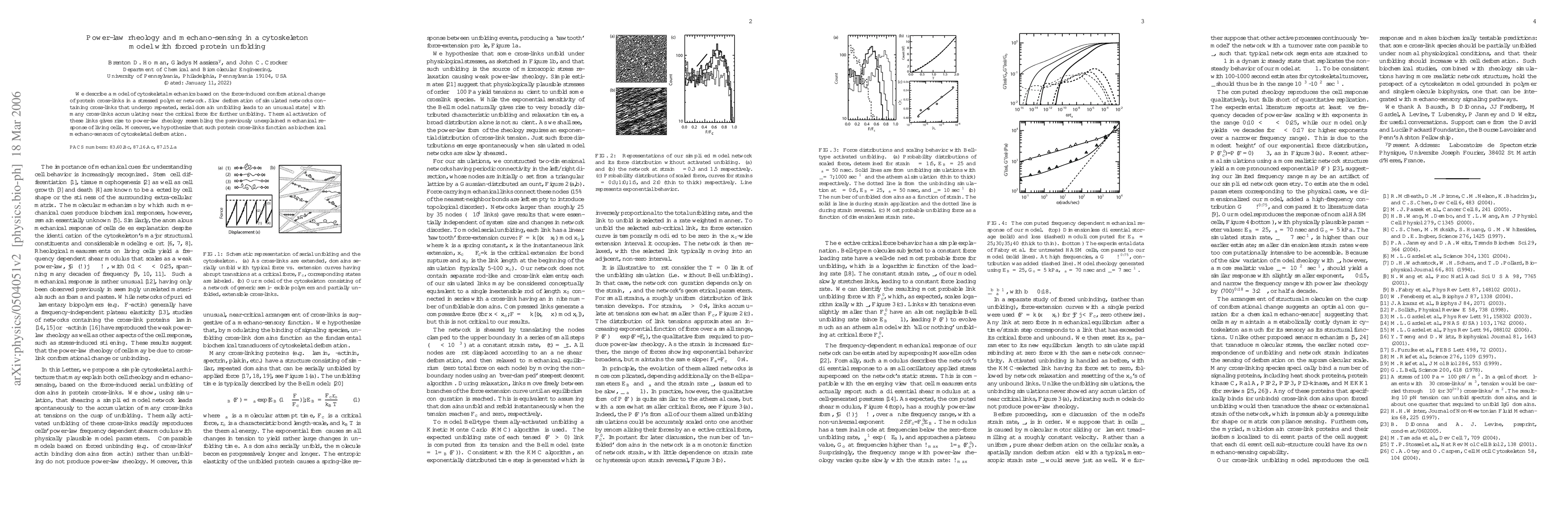 A cytoskeleton model with protein cross-links shows power-law rheology when deformed, resembling living cell behavior, and suggests these links function as mechano-sensors for deformation.