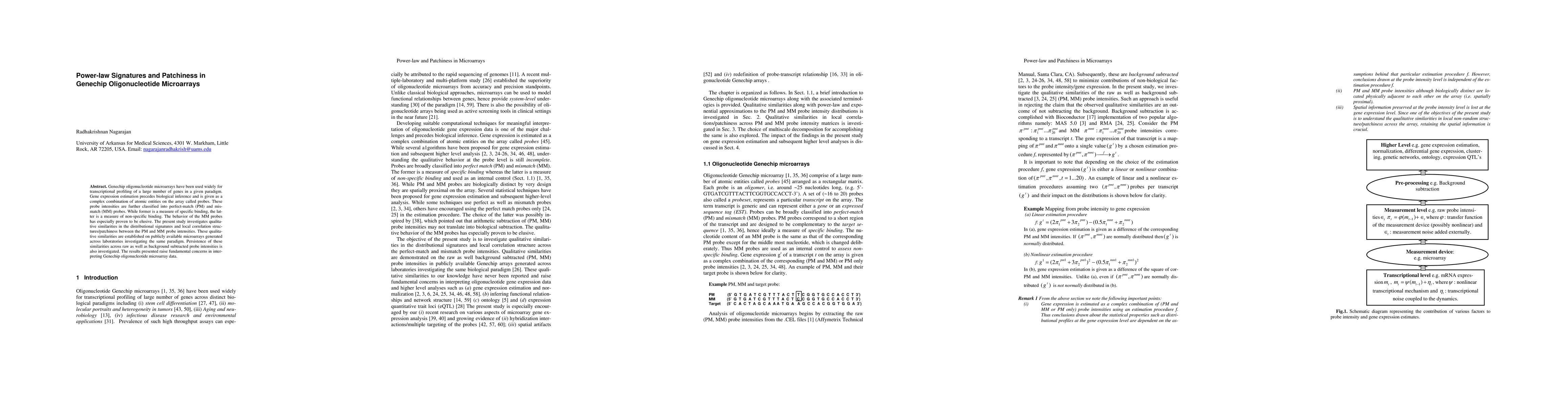 This study investigates qualitative similarities in the distributional signatures and local correlation structures between perfect-match and mis-match probe intensities in Genechip oligonucleotide microarrays, revealing fundamental concerns in interpreting microarray data across different laboratories.