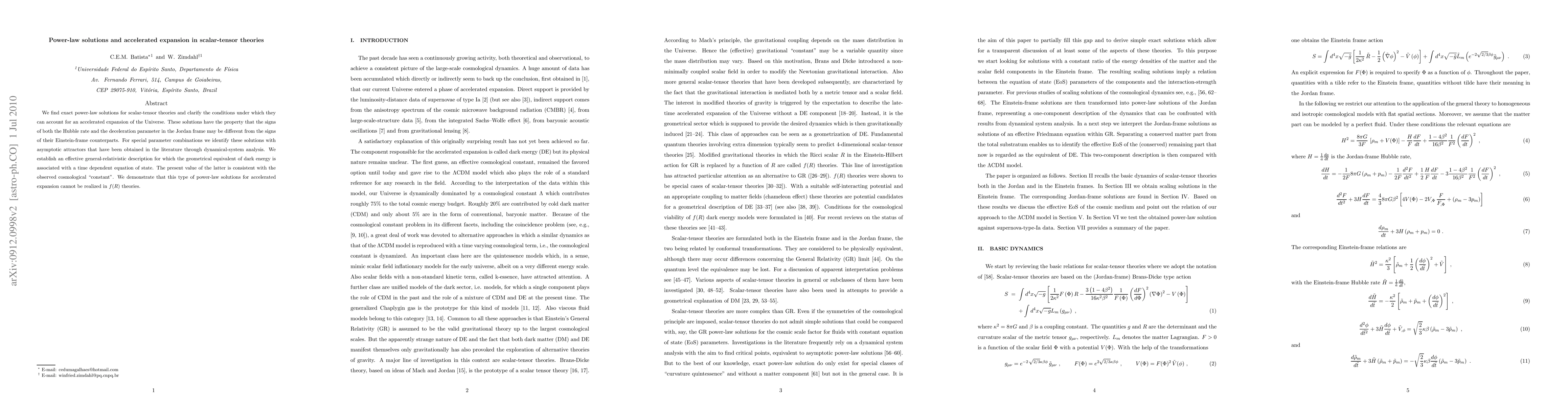 This paper identifies exact power-law solutions in scalar-tensor theories that can explain the accelerated expansion of the Universe, distinguishing between Jordan and Einstein frames. It shows that these solutions can serve as asymptotic attractors and are incompatible with f(R) theories.