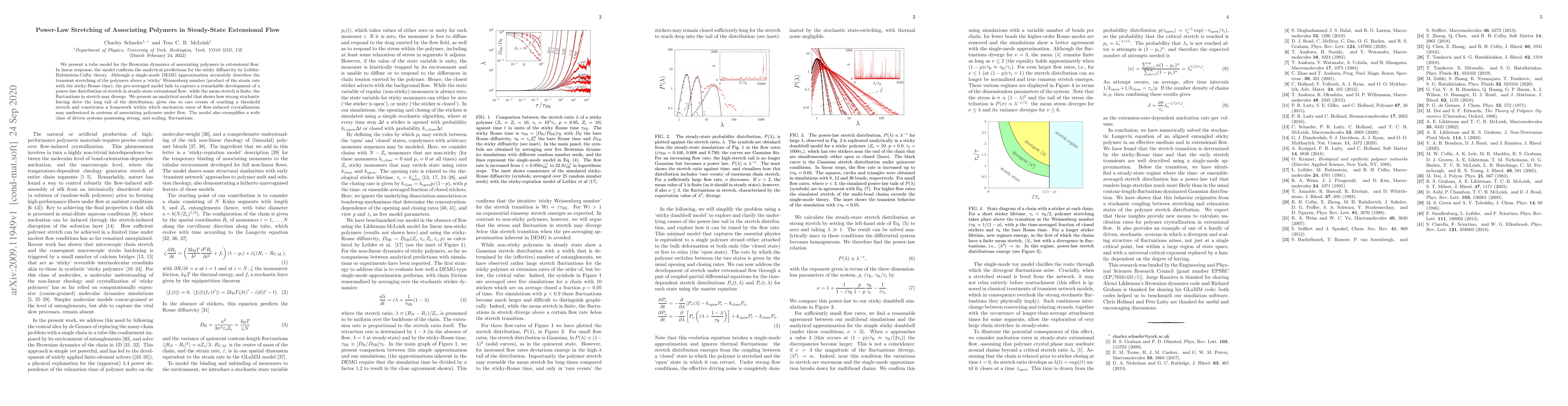 Researchers developed a new model to describe the stretching of associating polymers in steady-state extensional flow, finding that strong stochastic forcing leads to rare events of extreme stretch.