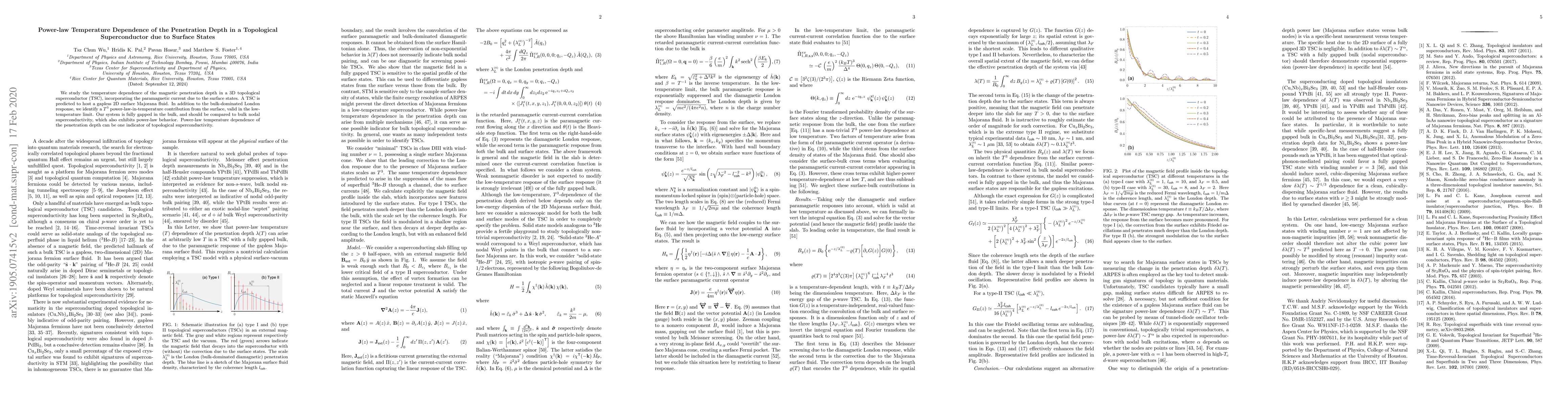We study the temperature dependence of the magnetic penetration depth in a 3D topological superconductor (TSC), incorporating the paramagnetic current due to the surface states. A TSC is predicted to host a gapless 2D surface Majorana fluid. In addition to the bulk-dominated London response, we identify a $T^3$ power-law-in-temperature contribution from the surface, valid in the low-temperature limit. Our system is fully gapped in the bulk, and should be compared to bulk nodal superconductivity, which also exhibits power-law behavior. Power-law temperature dependence of the penetration depth can be one indicator of topological superconductivity.