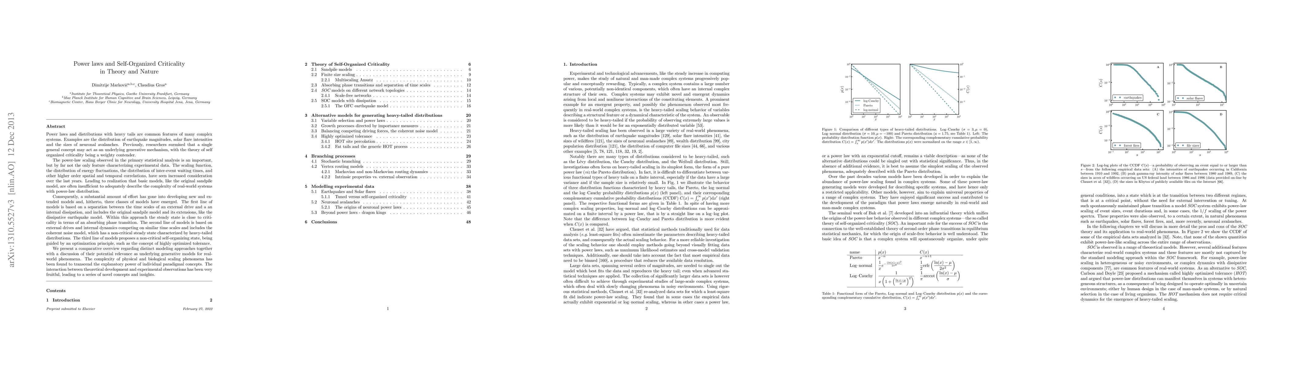 Power laws and distributions with heavy tails are common features of many experimentally studied complex systems, like the distribution of the sizes of earthquakes and solar flares, or the duration of neuronal avalanches in the brain. Previously, researchers surmised that a single general concept may act as a unifying underlying generative mechanism, with the theory of self organized criticality being a weighty contender. Consequently, a substantial amount of effort has gone into developing new and extended models and, hitherto, three classes of models have emerged. The first line of models is based on a separation between the time scales of drive and dissipation, and includes the original sandpile model and its extensions, like the dissipative earthquake model. Within this approach the steady state is close to criticality in terms of an absorbing phase transition. The second line of models is based on external drives and internal dynamics competing on similar time scales and includes the coherent noise model, which has a non-critical steady state characterized by heavy-tailed distributions. The third line of models proposes a non-critical self-organizing state, being guided by an optimization principle, such as the concept of highly optimized tolerance. We present a comparative overview regarding distinct modeling approaches together with a discussion of their potential relevance as underlying generative models for real-world phenomena. The complexity of physical and biological scaling phenomena has been found to transcend the explanatory power of individual paradigmal concepts. The interaction between theoretical development and experimental observations has been very fruitful, leading to a series of novel concepts and insights.