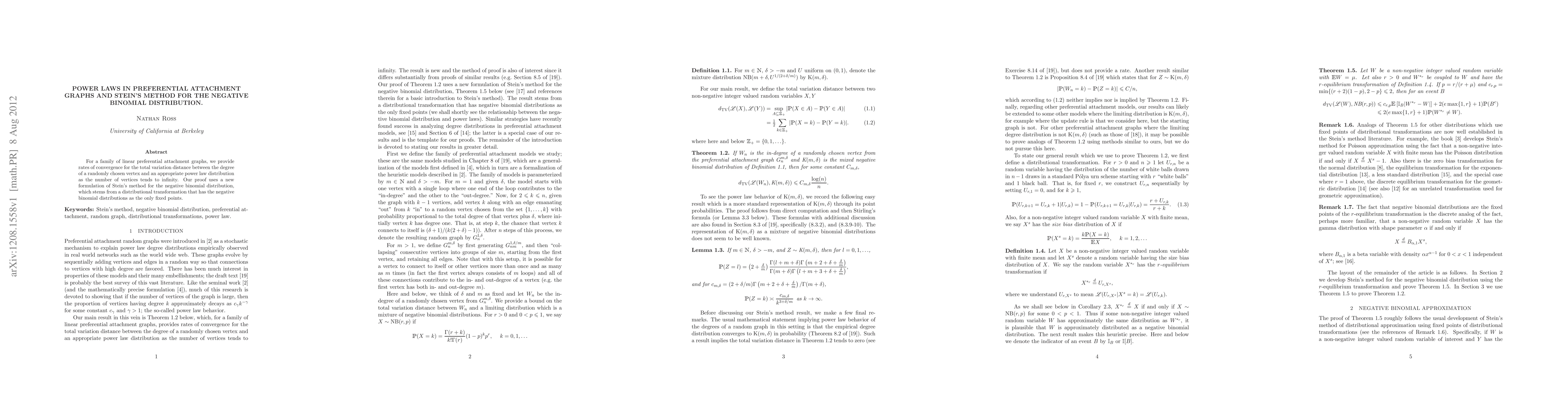 This paper studies linear preferential attachment graphs and establishes rates of convergence for the degree distribution to a power law, utilizing a novel application of Stein's method for the negative binomial distribution derived from a unique distributional transformation.