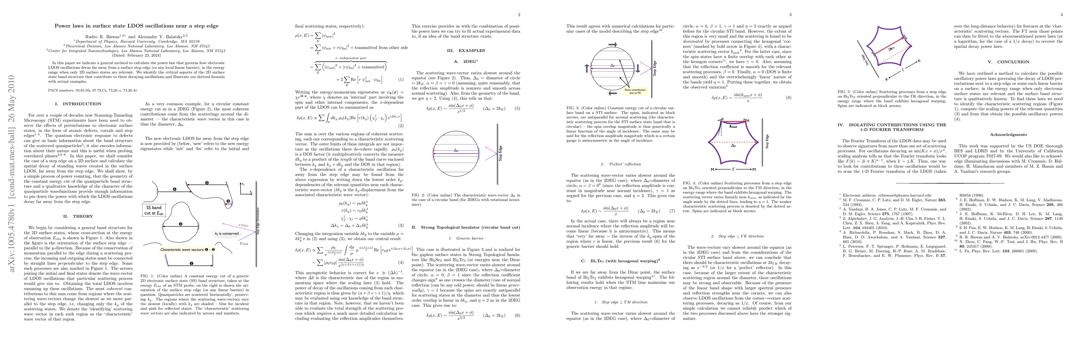 Researchers developed a method to calculate power law decays of electronic surface state oscillations near a step edge, focusing on 2D surface states.