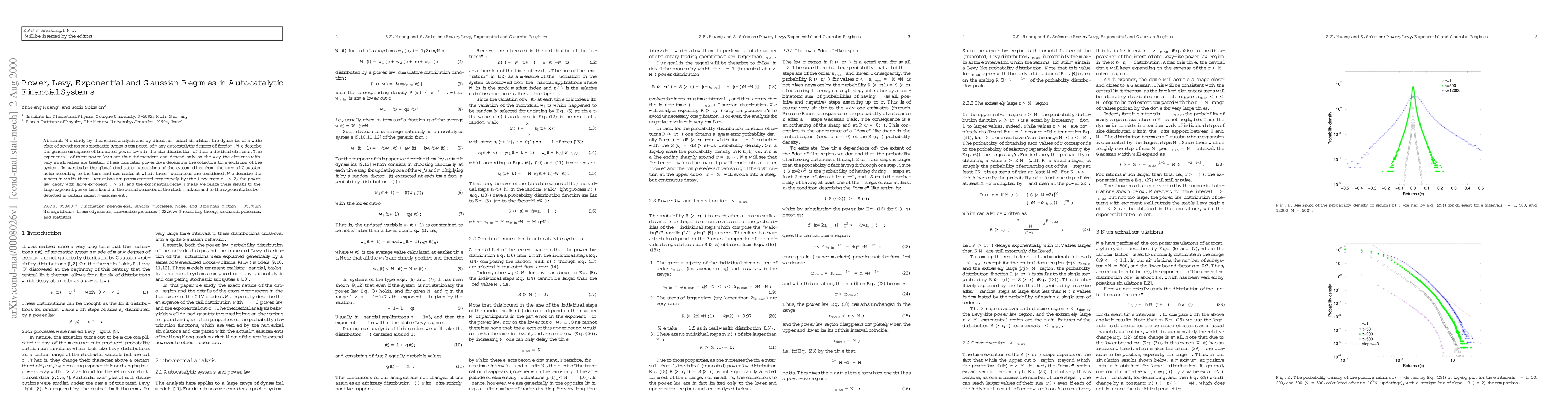 We study by theoretical analysis and by direct numerical simulation the dynamics of a wide class of asynchronous stochastic systems composed of many autocatalytic degrees of freedom. We describe the generic emergence of truncated power laws in the size distribution of their individual elements. The exponents $\alpha$ of these power laws are time independent and depend only on the way the elements with very small values are treated. These truncated power laws determine the collective time evolution of the system. In particular the global stochastic fluctuations of the system differ from the normal Gaussian noise according to the time and size scales at which these fluctuations are considered. We describe the ranges in which these fluctuations are parameterized respectively by: the Levy regime $\alpha < 2$, the power law decay with large exponent ($\alpha > 2$), and the exponential decay. Finally we relate these results to the large exponent power laws found in the actual behavior of the stock markets and to the exponential cut-off detected in certain recent measurement.