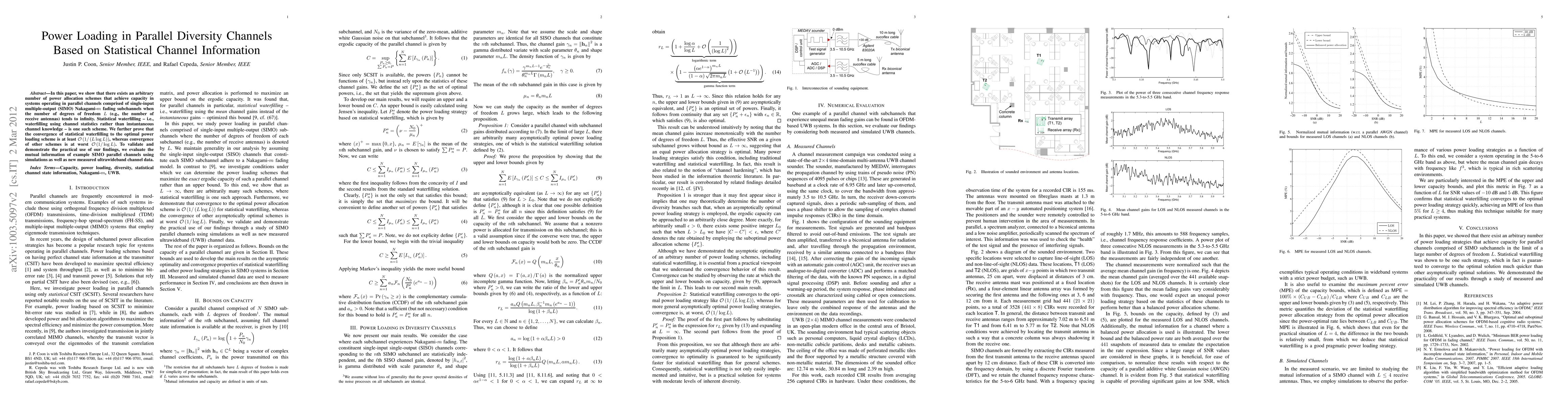 In this paper, we show that there exists an arbitrary number of power allocation schemes that achieve capacity in systems operating in parallel channels comprised of single-input multiple-output (SIMO) Nakagami-m fading subchannels when the number of degrees of freedom L (e.g., the number of receive antennas) tends to infinity. Statistical waterfilling -- i.e., waterfilling using channel statistics rather than instantaneous channel knowledge -- is one such scheme. We further prove that the convergence of statistical waterfilling to the optimal power loading scheme is at least O(1/(L log(L))), whereas convergence of other schemes is at worst O(1/log(L)). To validate and demonstrate the practical use of our findings, we evaluate the mutual information of example SIMO parallel channels using simulations as well as new measured ultrawideband channel data.