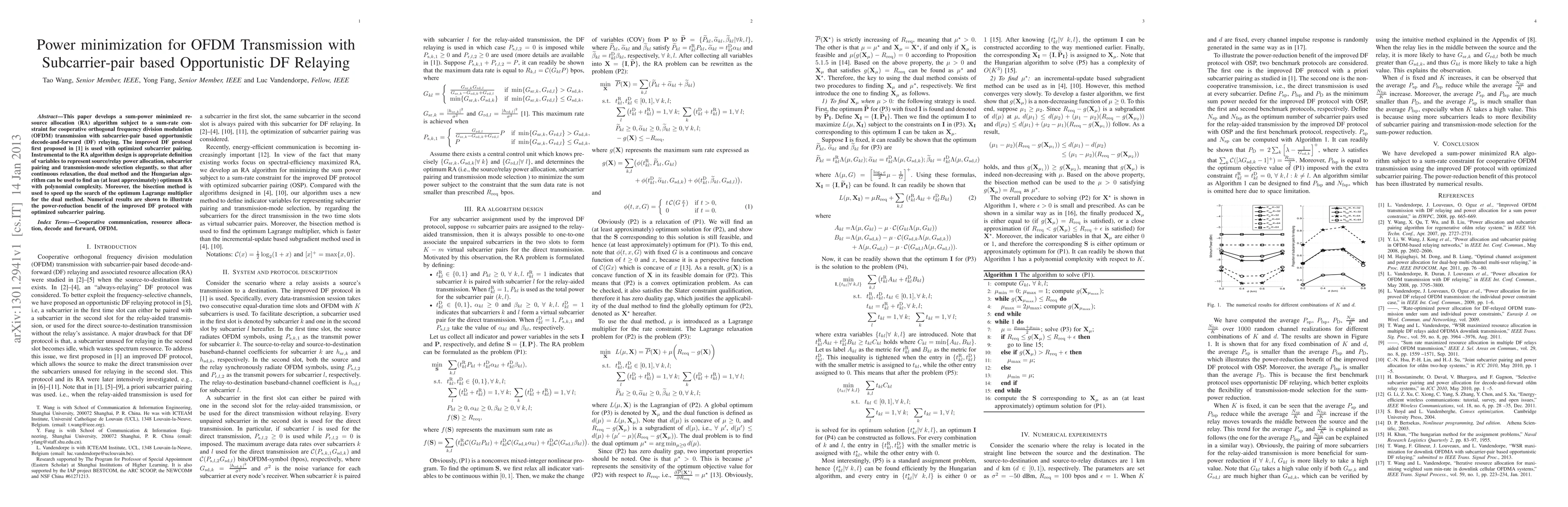 This paper proposes a sum-power minimized resource allocation algorithm for OFDM transmission using subcarrier-pair based opportunistic DF relaying, achieving optimal power allocation with polynomial complexity. Numerical results demonstrate significant power reduction benefits of the improved DF protocol.