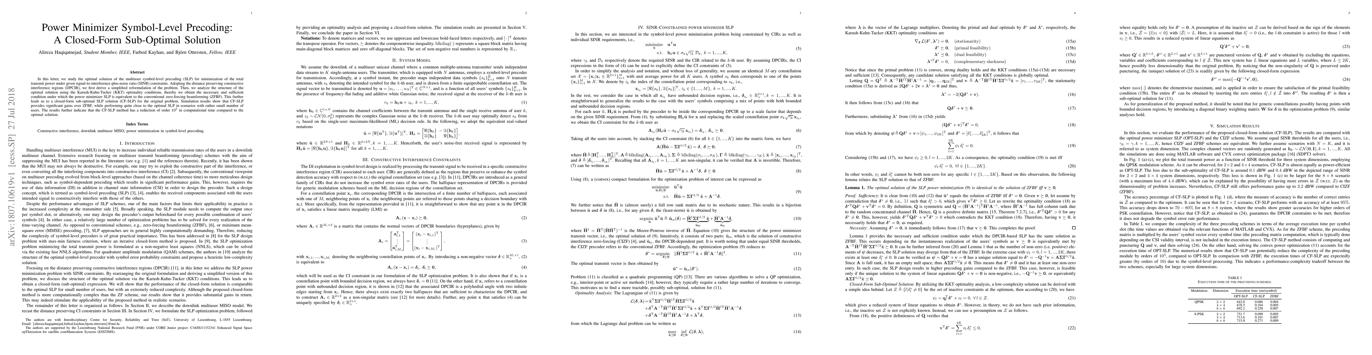 A research paper proposes a closed-form sub-optimal solution for minimizing total transmit power in multiuser symbol-level precoding under SINR constraints. The solution provides significant gains over conventional zero-forcing beamforming with reduced computational time.