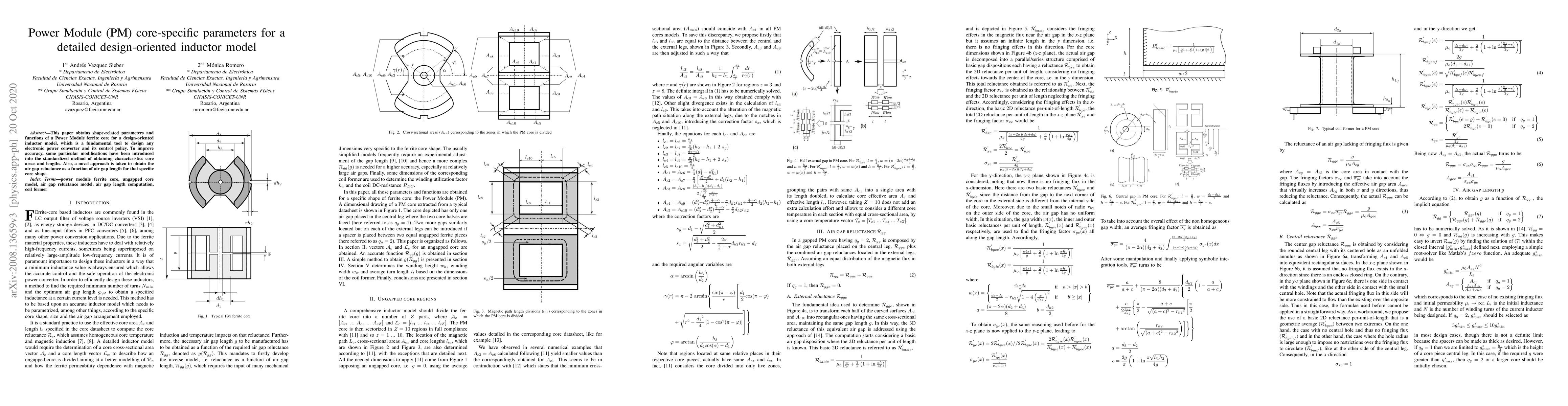 This paper obtains shape related parameters and functions of a Power Module ferrite core which can be required in a design-oriented inductor model, which is a fundamental tool to design any electronic power converter and its control policy. Some particular modifications have been introduced into the standardized method of obtaining characteristics core areas and lengths. Also, a novel approach is taken to obtain the air gap reluctance as a function of air gap length for that specific core shape.