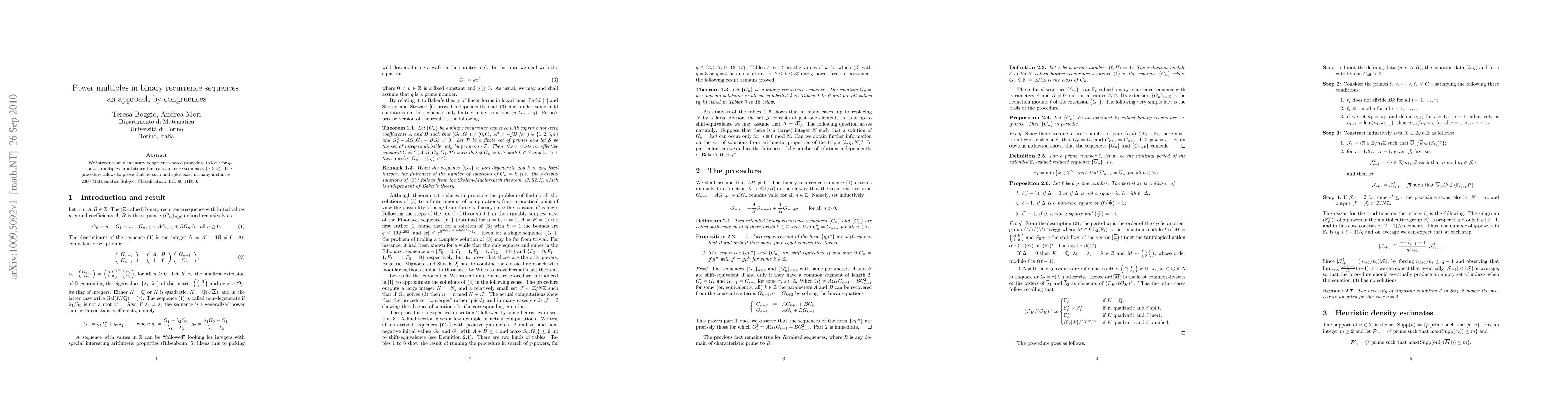 We introduce an elementary congruence-based procedure to look for q-th power multiples in arbitrary binary recurrence sequences (q>2). The procedure allows to prove that no such multiples exist in many instances.