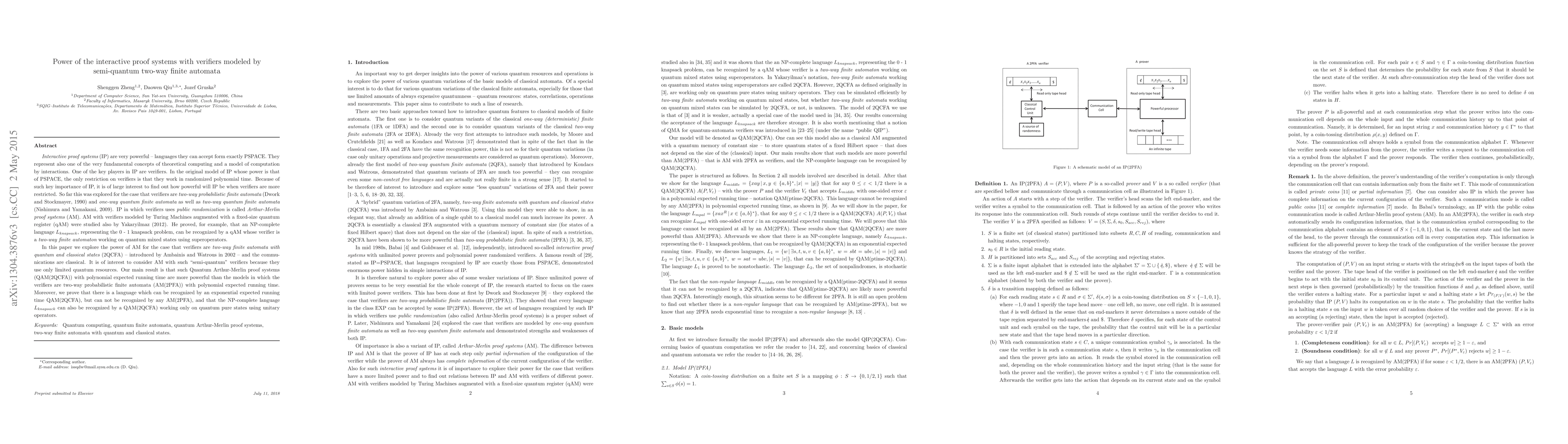 This paper investigates the enhanced computational power of Quantum Arthur-Merlin proof systems (QAM) when verifiers are modeled by semi-quantum two-way finite automata (2QCFA) compared to traditional two-way probabilistic finite automata (AM). The study finds that QAM(2QCFA) can recognize certain languages more efficiently than AM(2PFA).