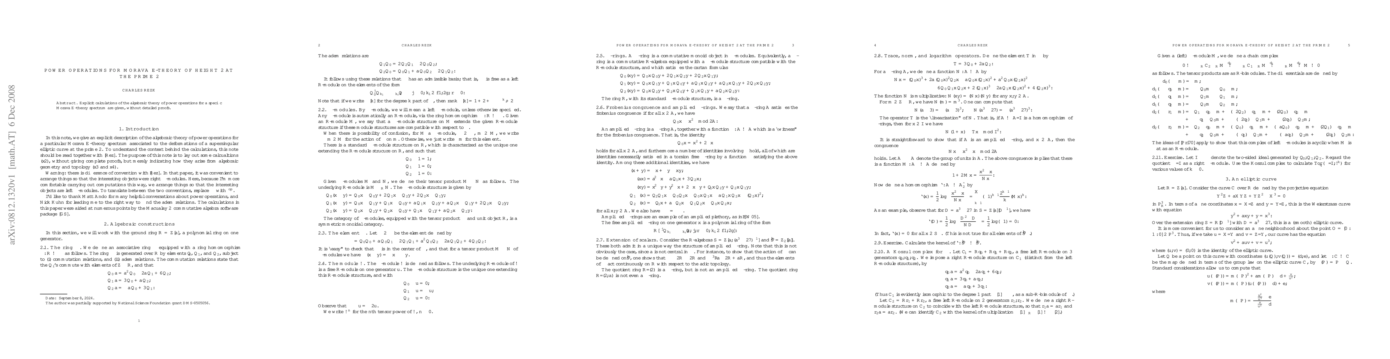 This paper provides explicit calculations for the power operations in Morava E-theory of height 2 at the prime 2, focusing on the algebraic theory without delving into detailed proofs.