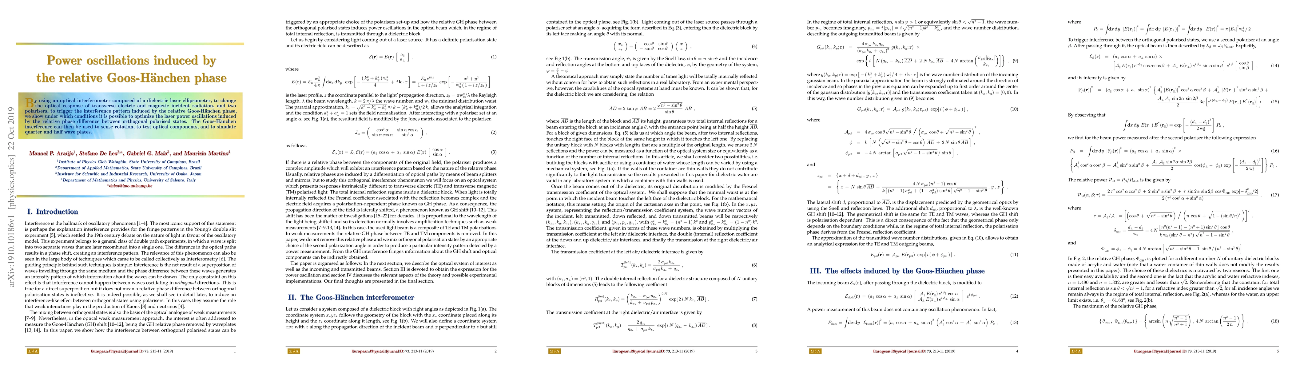 By using an optical interferometer composed of a dielectric laser ellipsometer, to change the optical response of transverse electric and magnetic incident radiation, and two polarisers, to trigger the interference pattern induced by the relative Goos-Haenchen phase, we show under which conditions it is possible to optimize the laser power oscillations induced by the relative phase difference between orthogonal polarised states. The Goos-Haenchen interference can then be used to sense rotation, to test optical components, and to simulate quarter and half wave plates.