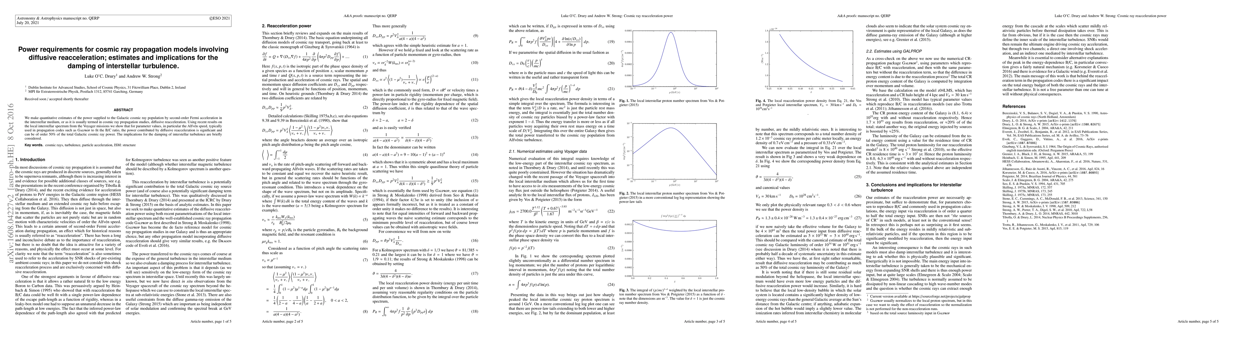 This paper estimates the power needed for cosmic ray propagation through diffusive reacceleration, finding it constitutes about 50% of the total Galactic cosmic ray power. The study also discusses its implications for damping interstellar turbulence.