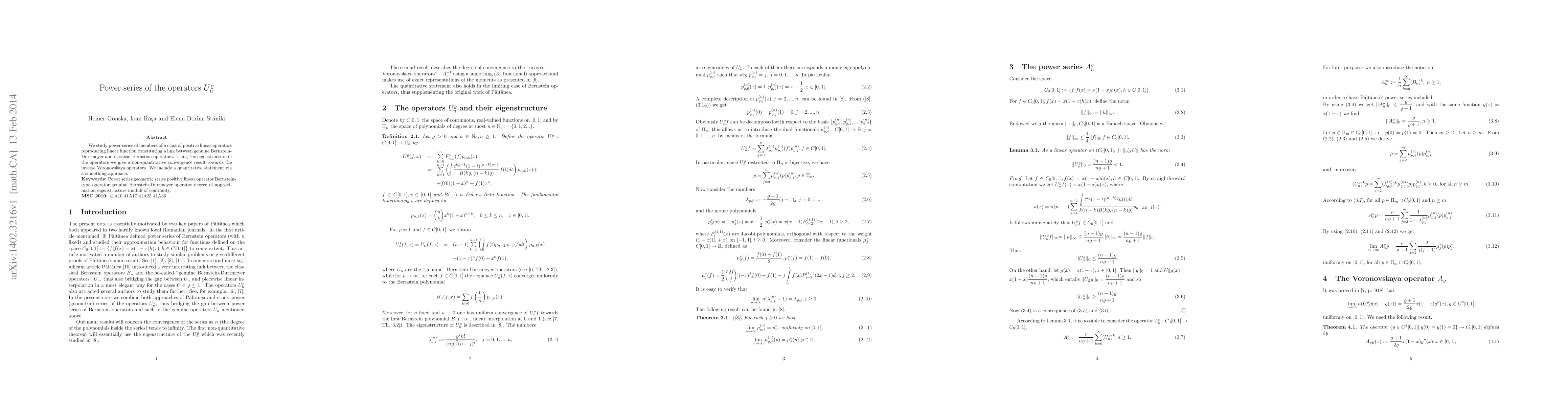 We study power series of members of a class of positive linear operators reproducing linear function and constituting a link between genuine Bernstein-Durrmeyer and classical Bernstein operators. Using the eigenstructure of the operators we give a non-quantitative convergence result towards the inverse Voronovskaya operators. We include a quantitative statement via a smoothing approach.