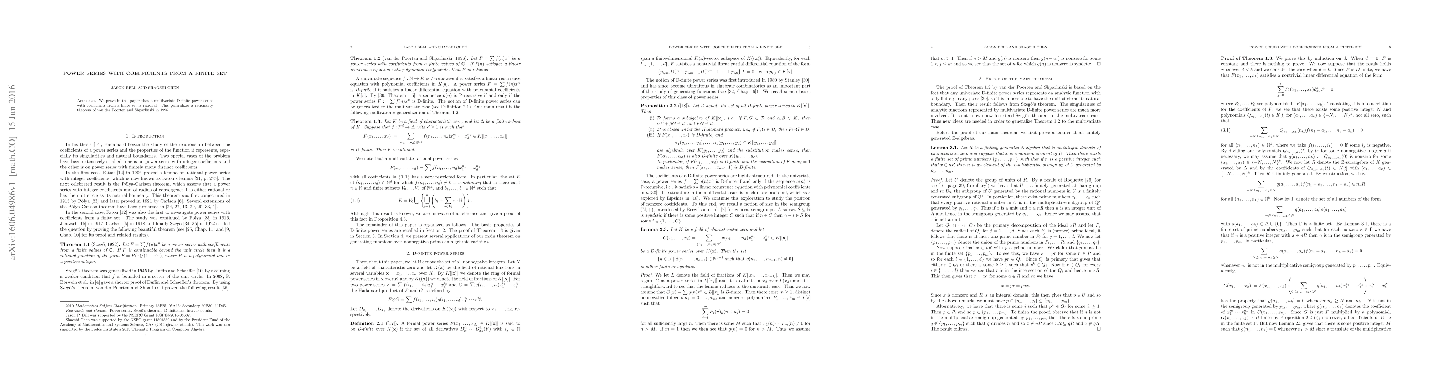 Summary: This paper proves that multivariate D-finite power series with coefficients from a finite set are rational, extending a 1996 rationality theorem by van der Poorten and Shparlinski. The result generalizes previous findings to a broader class of series.