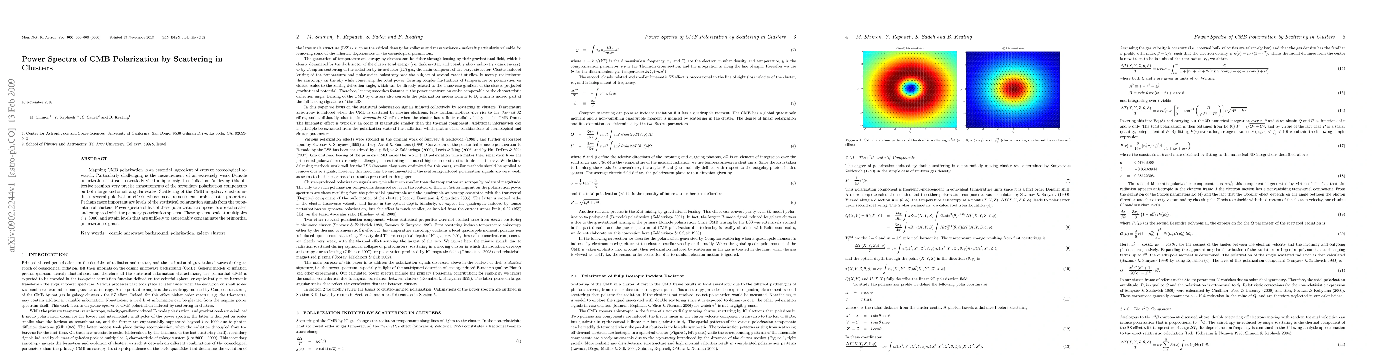 This paper calculates the power spectra of five secondary polarization components induced by CMB scattering in galaxy clusters, comparing them to primary polarization spectra. These secondary signals, peaking at high multipoles, are unlikely to significantly interfere with the detection of primordial B-mode polarization from inflation.