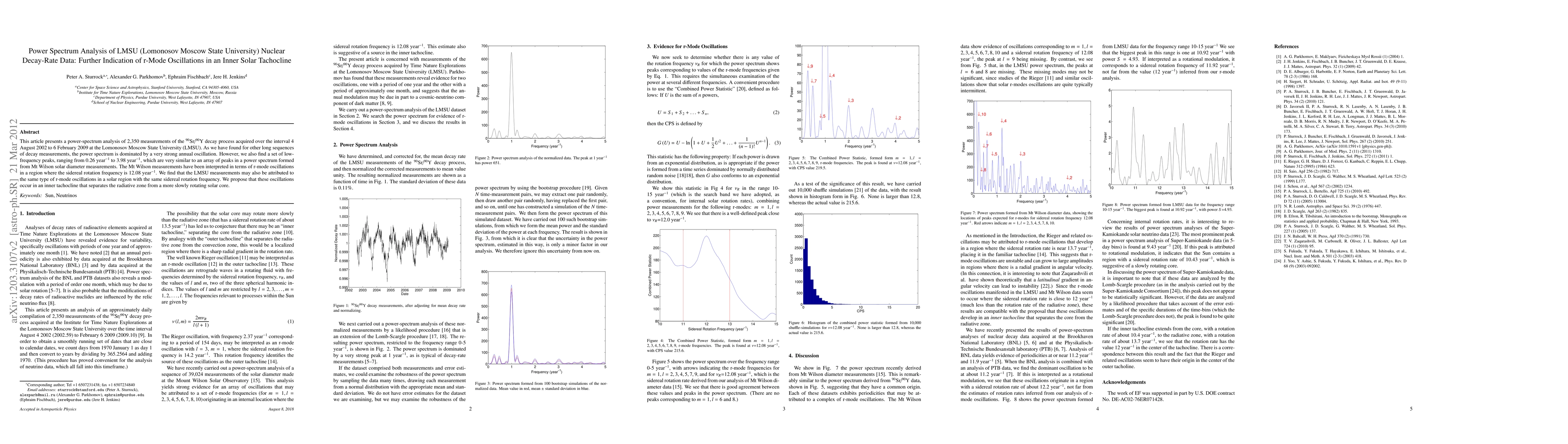 This study analyzes nuclear decay-rate data from LMSU, revealing strong annual oscillations and a series of low-frequency peaks similar to those observed in Mt Wilson solar diameter measurements, suggesting r-mode oscillations in an inner solar tachocline.