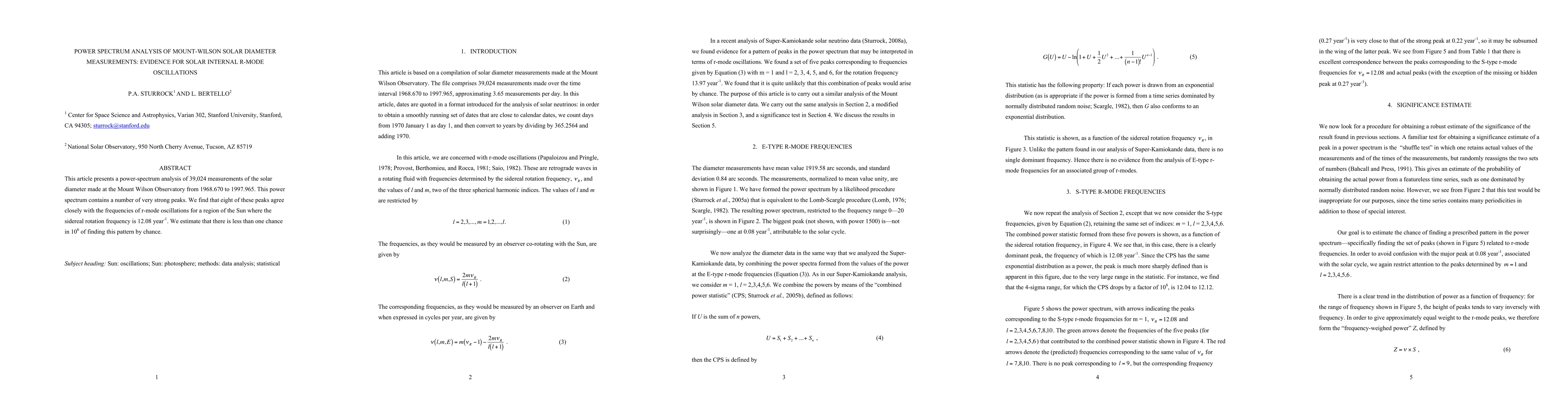 This article presents a power-spectrum analysis of 39,024 measurements of the solar diameter made at the Mount Wilson Observatory from 1968.670 to 1997.965. This power spectrum contains a number of very strong peaks. We find that eight of these peaks agree closely with the frequencies of r-mode oscillations for a region of the Sun where the sidereal rotation frequency is 12.08 year$^{-1}$. We estimate that there is less than one chance in ten to the sixth power of finding this pattern by chance.