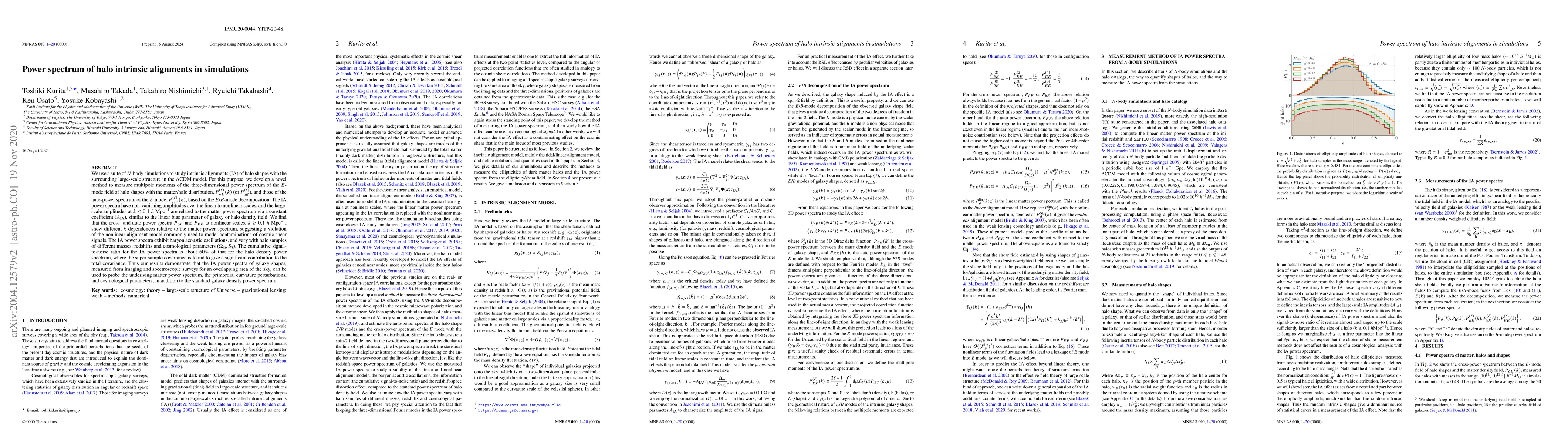 This paper investigates intrinsic alignments (IA) of halo shapes in the $\Lambda$CDM model using $N$-body simulations, developing a method to measure the power spectrum of the $E$-mode field. The IA power spectra show non-vanishing amplitudes and exhibit baryon acoustic oscillations, varying with halo mass, redshift, and cosmological parameters, suggesting a violation of the commonly used nonlinear alignment model.