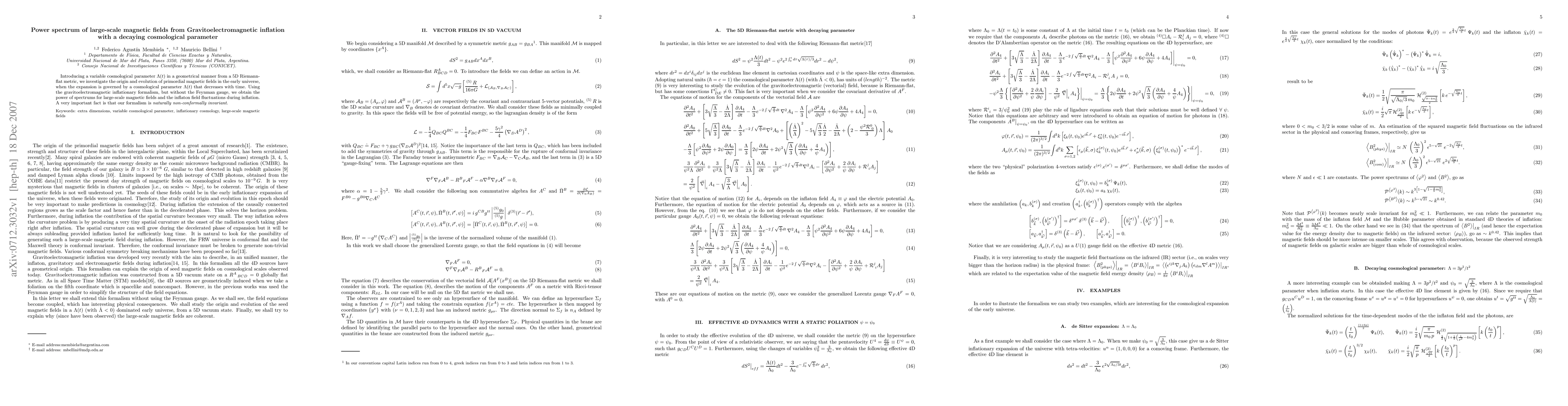 This paper explores the origin and evolution of primordial magnetic fields in the early universe using a variable cosmological parameter $\Lambda(t)$ from a 5D Riemann-flat metric during gravitoelectromagnetic inflation. It derives the power spectrum for large-scale magnetic fields and inflaton field fluctuations, highlighting a naturally non-conformally invariant formalism.