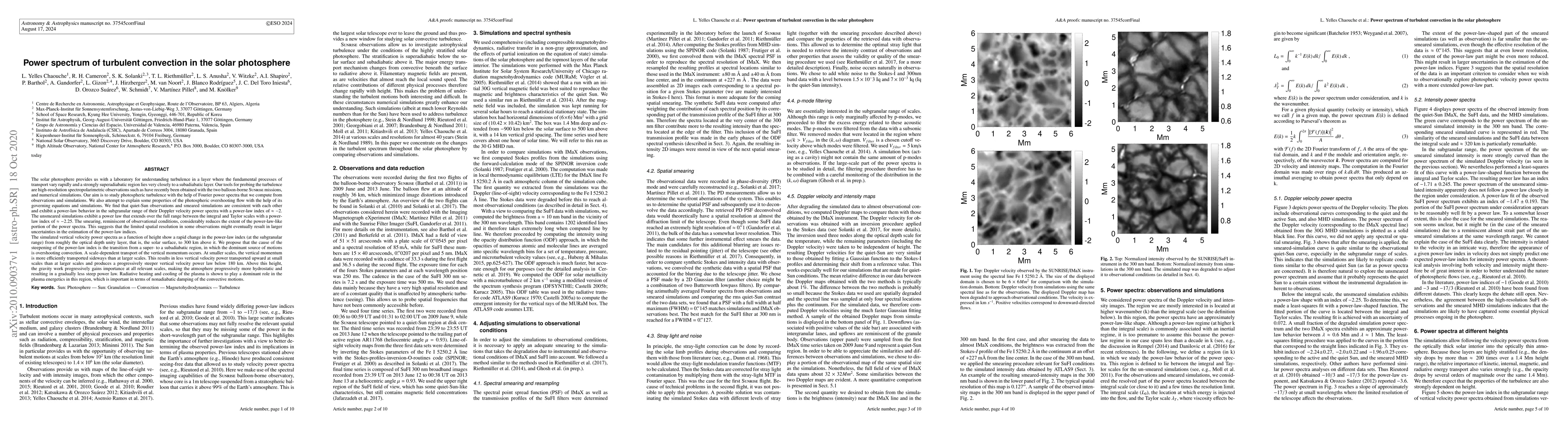 The solar photosphere provides us with a laboratory for understanding turbulence in a layer where the fundamental processes of transport vary rapidly and a strongly superadiabatic region lies very closely to a subadiabatic layer. Our tools for probing the turbulence are high-resolution spectropolarimetric observations such as have recently been obtained with the two sunrise missions, and numerical simulations. Our aim is to study photospheric turbulence with the help of Fourier power spectra that we compute from observations and simulations. We also attempt to explain some properties of the photospheric overshooting flow with the help of its governing equations and simulations. We find that quiet-Sun observations and smeared simulations exhibit a power-law behavior in the subgranular range of their Doppler velocity power spectra with an index of$~\approx -2$. The unsmeared simulations exhibit a power-law index of$~\approx -2.25$. The smearing considerably reduces the extent of the power-law-like portion of the spectra. Therefore, the limited spatial resolution in some observations might eventually result in larger uncertainties in the estimation of the power-law indices. The simulated vertical velocity power spectra as a function of height show a rapid change in the power-law index from the solar surface to $300$~km above it. A scale-dependent transport of the vertical momentum occurs. At smaller scales, the vertical momentum is more efficiently transported sideways than at larger scales. This results in less vertical velocity power transported upward at small scales than at larger scales and produces a progressively steeper vertical velocity power law below $180$ km. Above this height, the gravity work progressively gains importance at all scales, making the atmosphere progressively more hydrostatic and resulting in a gradually less steep power law.