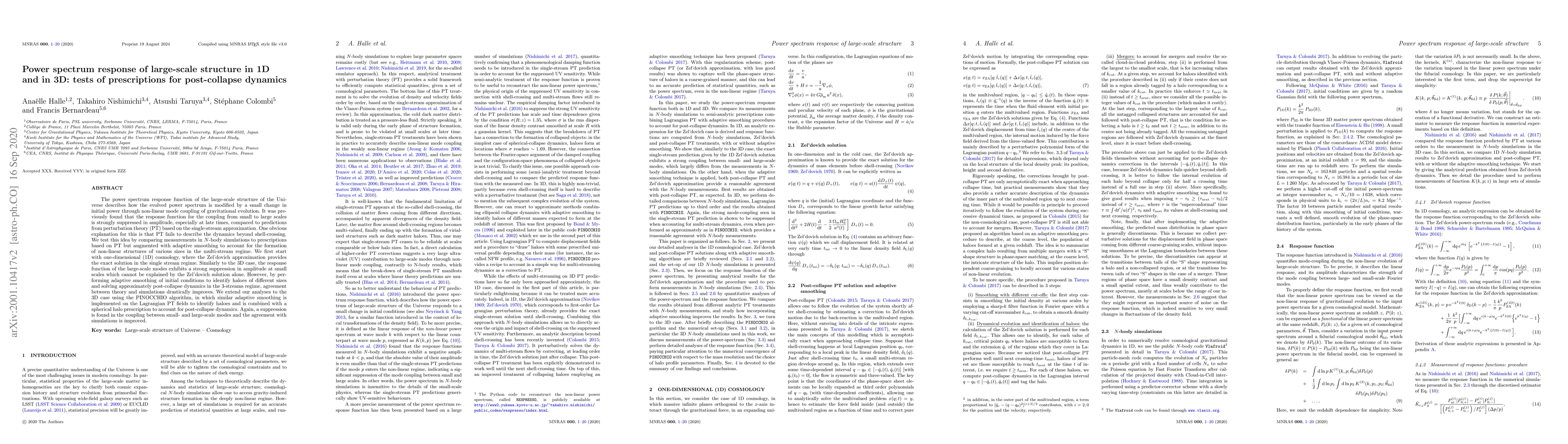 Research investigates how large-scale structure of the universe evolves after a small change in initial power, finding that theories struggle to predict dynamics beyond shell-crossing, but improved simulations using adaptive smoothing techniques show better agreement with predictions.
