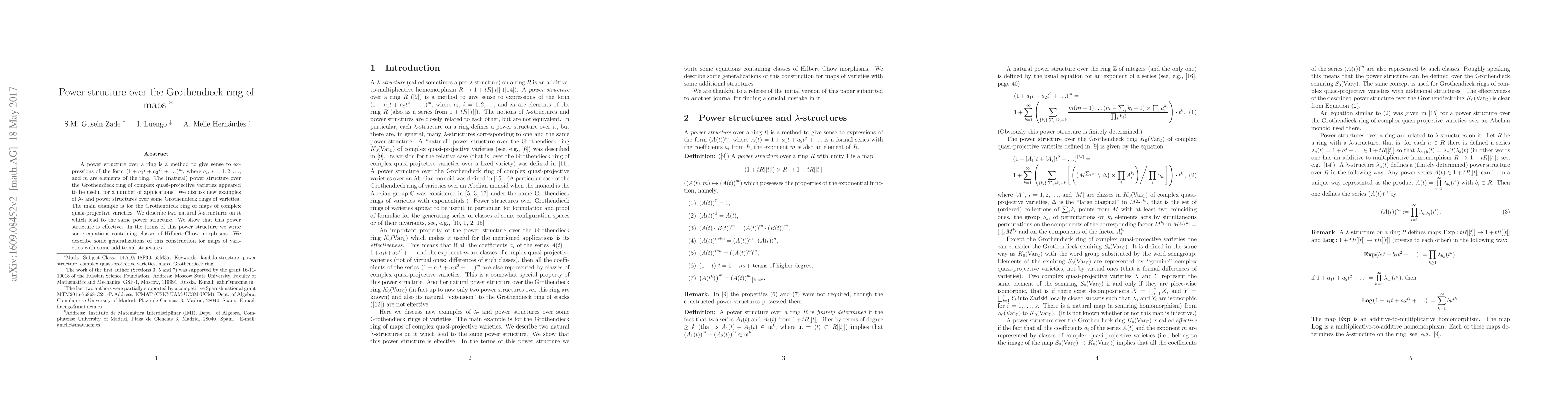 The paper introduces and analyzes two natural λ-structures on the Grothendieck ring of maps, demonstrating that they define the same power structure, which is effective and applicable to Hilbert-Chow morphisms.
