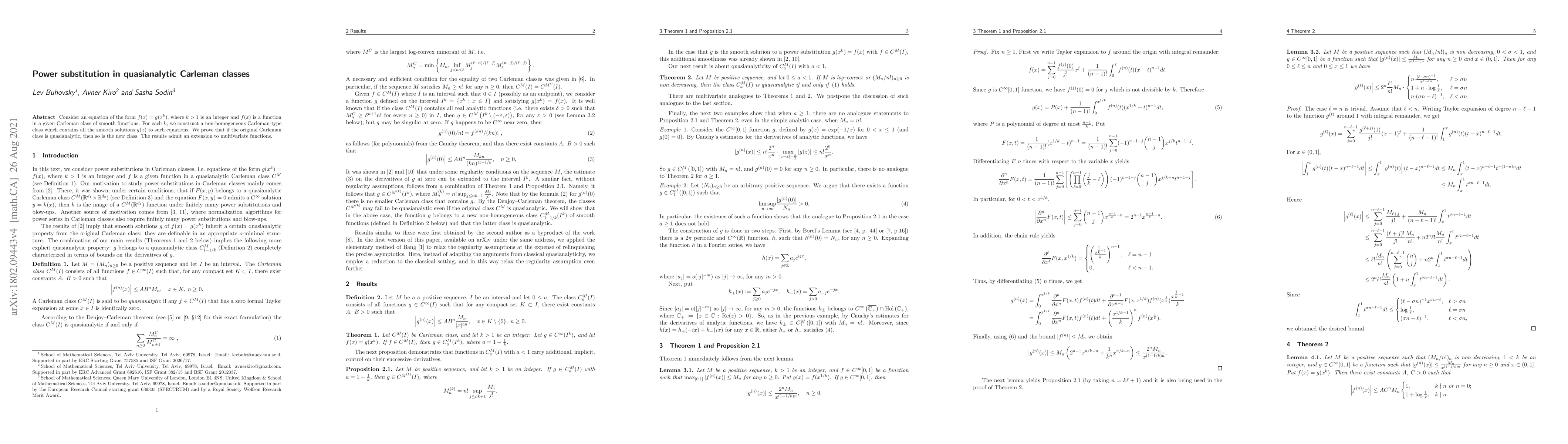 This research constructs Carleman-type classes for smooth solutions g(x) of equations where f(x) is in a given Carleman class and f(x) = g(x^k), for k > 1. It proves that if the original Carleman class is quasianalytic, the new class remains so, with extensions applicable to multivariate functions.