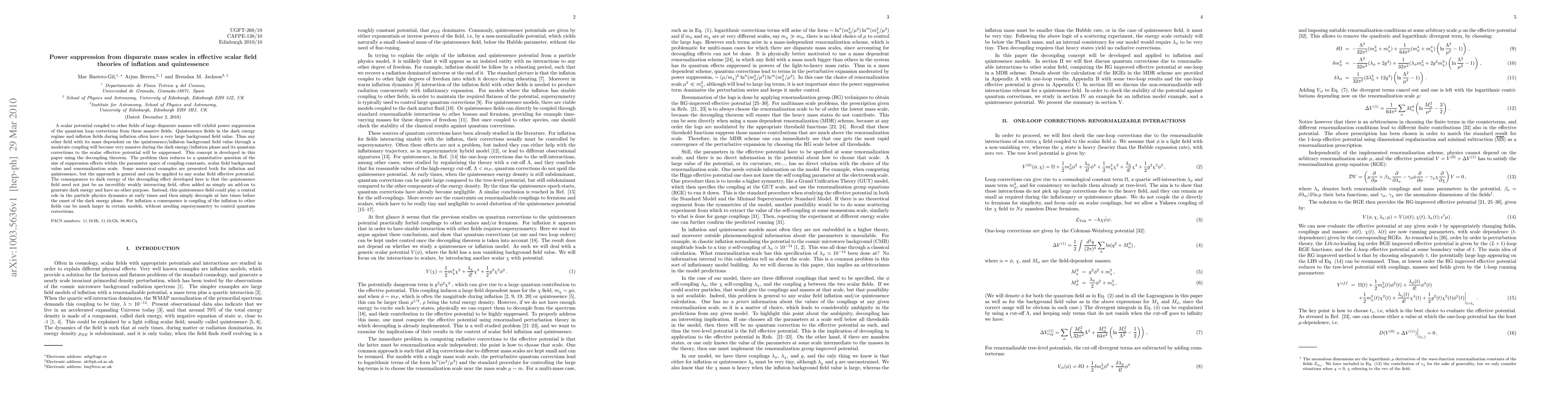 This paper explores how quantum loop corrections from fields with disparate mass scales are suppressed in effective scalar field theories of inflation and quintessence, using the decoupling theorem. It suggests that quintessence and inflaton fields can significantly influence other fields' masses and quantum corrections, potentially allowing for larger couplings in inflation models without requiring supersymmetry.