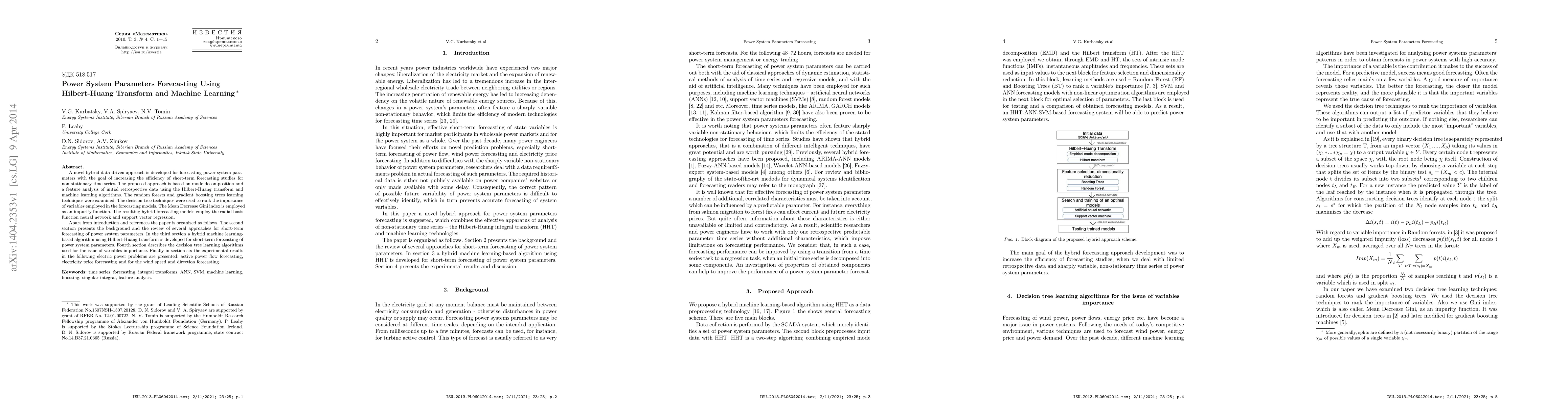 This paper proposes a hybrid forecasting method using the Hilbert-Huang transform and machine learning for improving short-term power system parameter predictions. The approach combines mode decomposition, feature analysis, and advanced machine learning techniques like random forests and gradient boosting for enhanced accuracy.