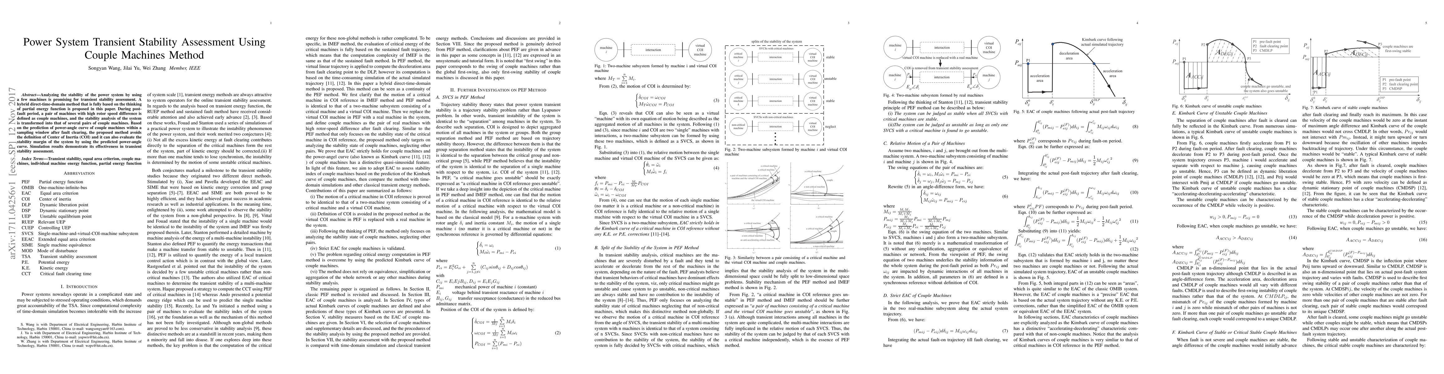 This paper proposes a hybrid direct-time-domain method for transient stability assessment in power systems, focusing on pairs of machines with significant rotor speed differences termed "couple machines." The method predicts power-angle curves to evaluate stability without defining the Center of Inertia, demonstrating effectiveness through simulations.
