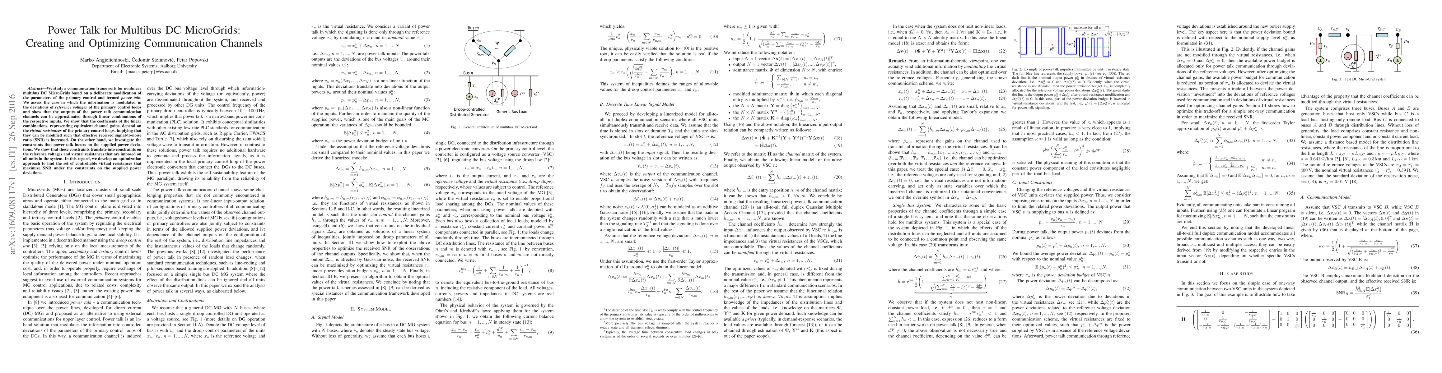 Researchers develop a communication framework for nonlinear multibus DC MicroGrids called 'power talk' to improve signal-to-noise ratio, while also establishing constraints on power deviations and optimizing virtual resistances.