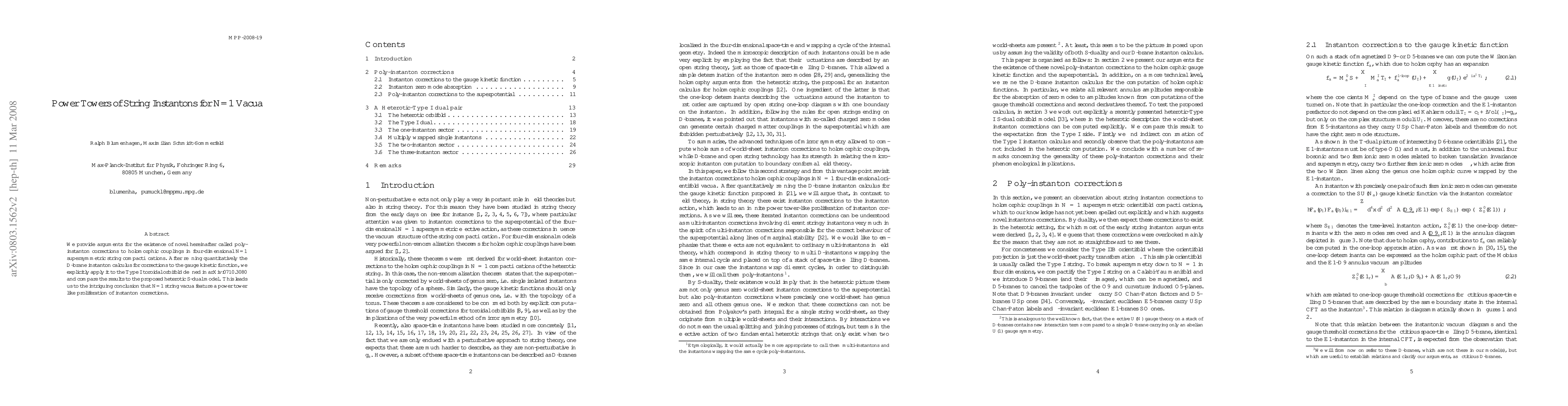 Title: Power Towers of String Instantons for N=1 Vacua Summary: The paper demonstrates the existence of poly-instanton corrections in N=1 supersymmetric string compactifications, showing that these corrections proliferate in a power tower manner, which is verified through refined D-brane instanton calculus applied to a Type I toroidal orbifold.