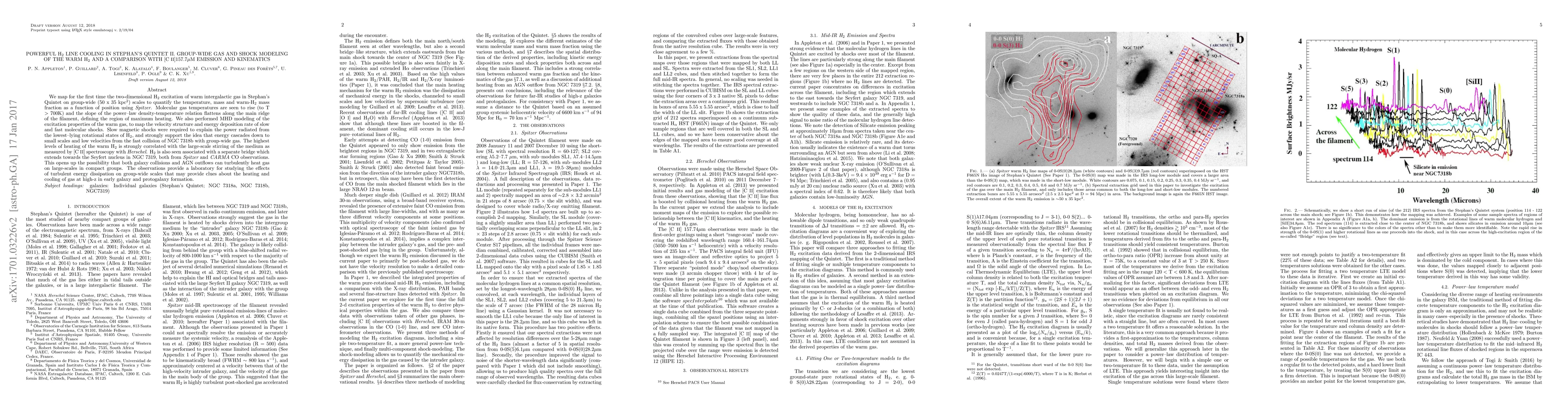 We map for the first time the two-dimensional H_2 excitation of warm intergalactic gas in Stephan's Quintet on group-wide (50 x 35 kpc^2) scales to quantify the temperature, mass and warm-H_2 mass fraction as a function of position using Spitzer. Molecular gas temperatures are seen to rise (to T > 700K) and the slope of the power--law density-temperature relation flattens along the main ridge of the filament, defining the region of maximum heating. We also performed MHD modeling of the excitation properties of the warm gas, to map the velocity structure and energy deposition rate of slow and fast molecular shocks. Slow magnetic shocks were required to explain the power radiated from the lowest--lying rotational states of H_2, and strongly support the idea that energy cascades down to small scales and low velocities from the fast collision of NGC 7318b with group-wide gas. The highest levels of heating of the warm H_2 is strongly correlated with the large-scale stirring of the medium as measured by [CII] spectroscopy with Herschel. H_2 is also seen associated with a separate bridge which extends towards the Seyfert nucleus in NGC 7319, both from Spitzer and CARMA CO observations. This opens up the possibility that both galaxy collisions and AGN outflows can turbulently heat gas on large-scales in compact groups. The observations provide a laboratory for studying the effects of turbulent energy dissipation on group-wide scales that may provide clues about the heating and cooling of gas at high-z in early galaxy and protogalaxy formation.