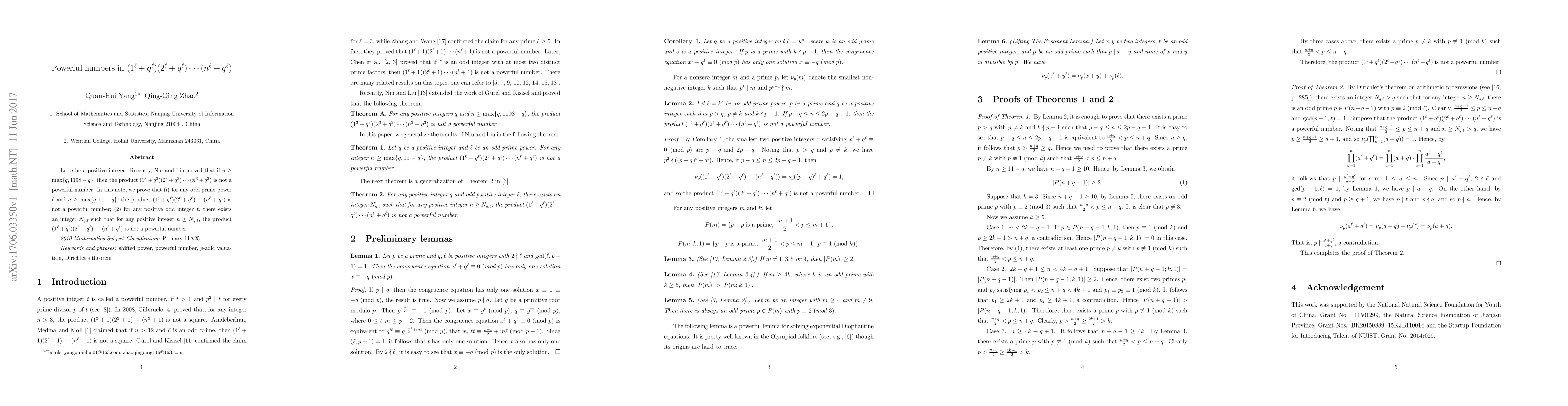 This paper extends the results of Niu and Liu on the non-powerful nature of certain products involving powers of integers and a fixed positive integer $q$. It proves that for any odd prime power $\ell$ and sufficiently large $n$, the product $(1^{\ell}+q^{\ell})(2^{\ell}+q^{\ell})\cdots (n^{\ell}+q^{\ell})$ is not a powerful number.