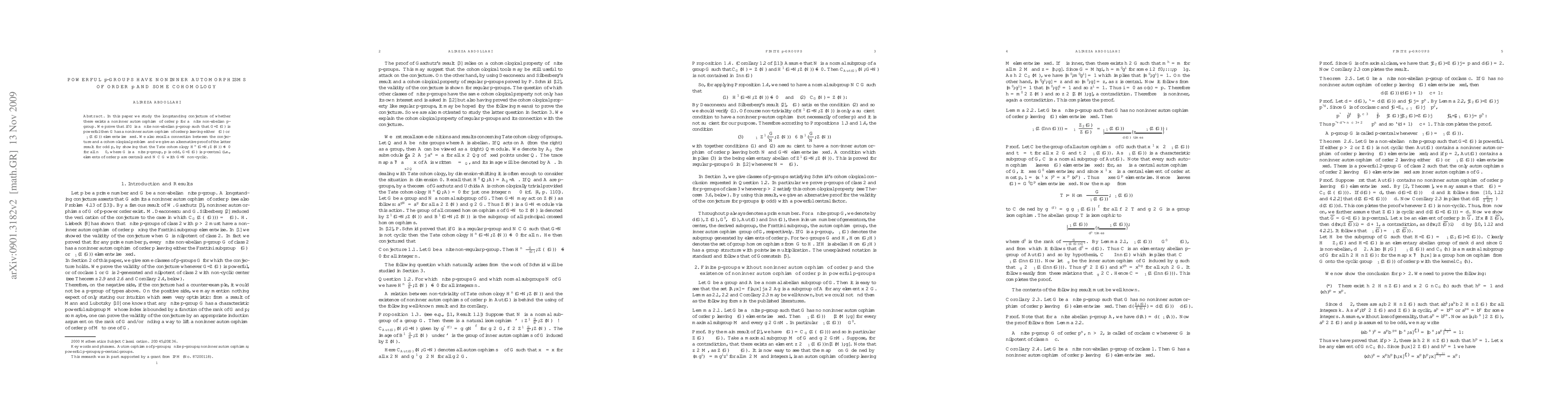 In this paper we study the longstanding conjecture of whether there exists a noninner automorphism of order $p$ for a finite non-abelian $p$-group. We prove that if $G$ is a finite non-abelian $p$-group such that $G/Z(G)$ is powerful then $G$ has a noninner automorphism of order $p$ leaving either $\Phi(G)$ or $\Omega_1(Z(G))$ elementwise fixed. We also recall a connection between the conjecture and a cohomological problem and we give an alternative proof of the latter result for odd $p$, by showing that the Tate cohomology $H^n(G/N,Z(N))\not=0$ for all $n\geq 0$, where $G$ is a finite $p$-group, $p$ is odd, $G/Z(G)$ is $p$-central (i.e., elements of order $p$ are central) and $N\lhd G$ with $G/N$ non-cyclic.