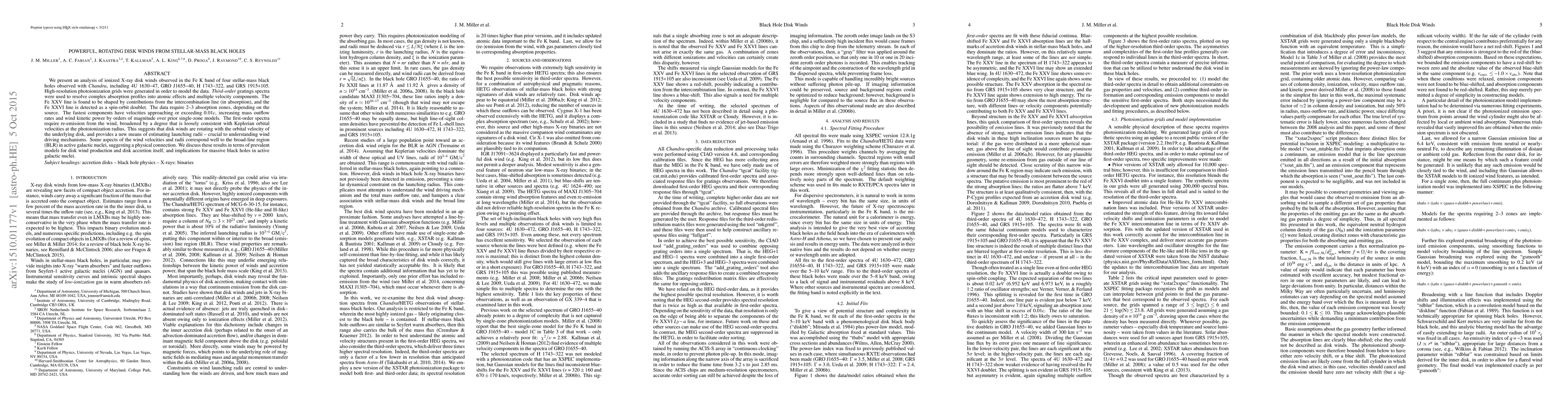 We present an analysis of ionized X-ray disk winds observed in the Fe K band of four stellar-mass black holes observed with Chandra, including 4U 1630-47, GRO J1655-40, H 1743-322, and GRS 1915+105. High-resolution photoionization grids were generated in order to model the data. Third-order gratings spectra were used to resolve complex absorption profiles into atomic effects and multiple velocity components. The Fe XXV line is found to be shaped by contributions from the intercombination line (in absorption), and the Fe XXVI line is detected as a spin-orbit doublet. The data require 2-3 absorption zones, depending on the source. The fastest components have velocities approaching or exceeding 0.01c, increasing mass outflow rates and wind kinetic power by orders of magnitude over prior single-zone models. The first-order spectra require re-emission from the wind, broadened by a degree that is loosely consistent with Keplerian orbital velocities at the photoionization radius. This suggests that disk winds are rotating with the orbital velocity of the underlying disk, and provides a new means of estimating launching radii -- crucial to understanding wind driving mechanisms. Some aspects of the wind velocities and radii correspond well to the broad-line region (BLR) in active galactic nuclei, suggesting a physical connection. We discuss these results in terms of prevalent models for disk wind production and disk accretion itself, and implications for massive black holes in active galactic nuclei.