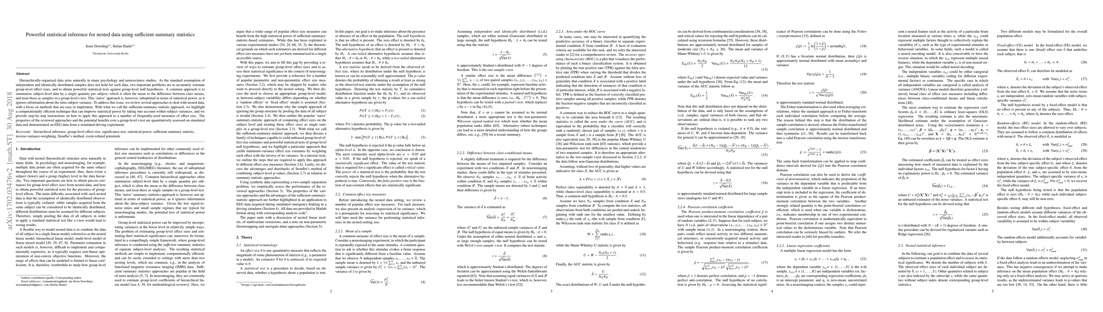 The paper reviews and compares statistical methods for nested data, focusing on sufficient summary statistics to improve statistical power by considering within-subject variances. It highlights the suboptimality of naive approaches that ignore intra-subject variance and presents a computationally efficient technique for enhanced power.