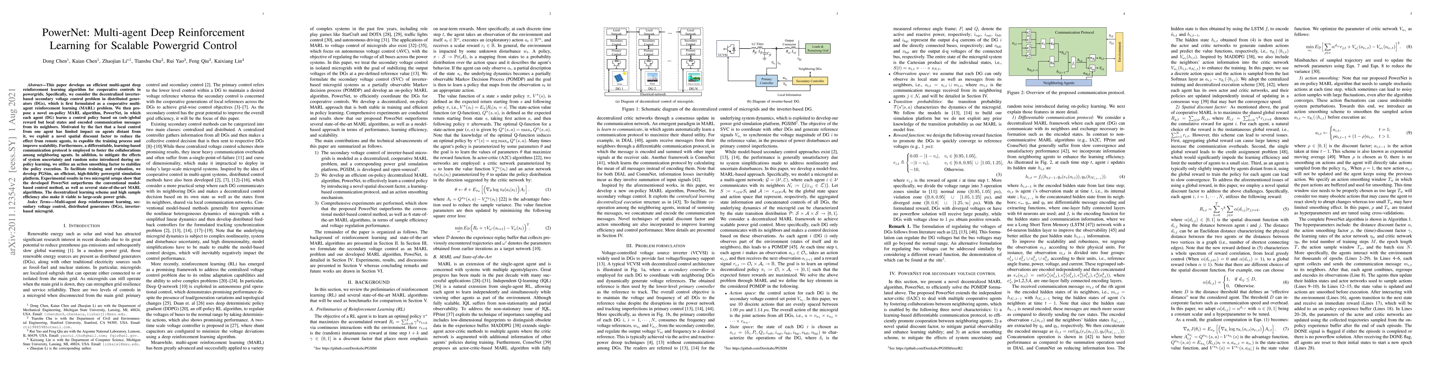 This paper proposes PowerNet, a novel multi-agent deep reinforcement learning algorithm for scalable powergrid control, specifically addressing decentralized inverter-based secondary voltage control in distributed generators. The algorithm leverages a spatial discount factor and differentiable communication protocol to enhance scalability and stability, outperforming conventional and state-of-the-art methods in microgrid simulations.