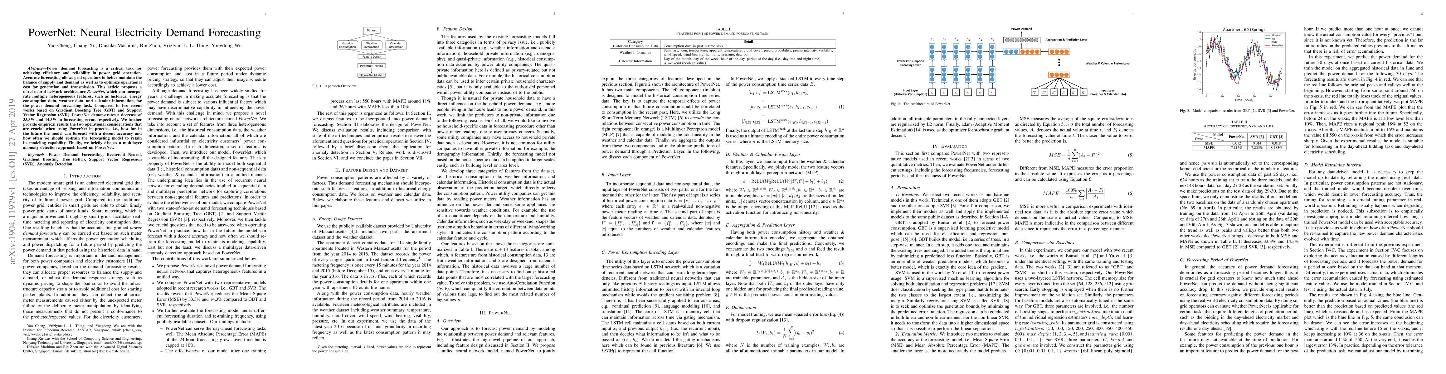 PowerNet, a novel neural network architecture, enhances power demand forecasting by integrating diverse features like historical energy data and weather information. It outperforms Gradient Boosting Tree and Support Vector Regression methods, reducing forecasting errors by 33.3% and 14.3%, respectively.