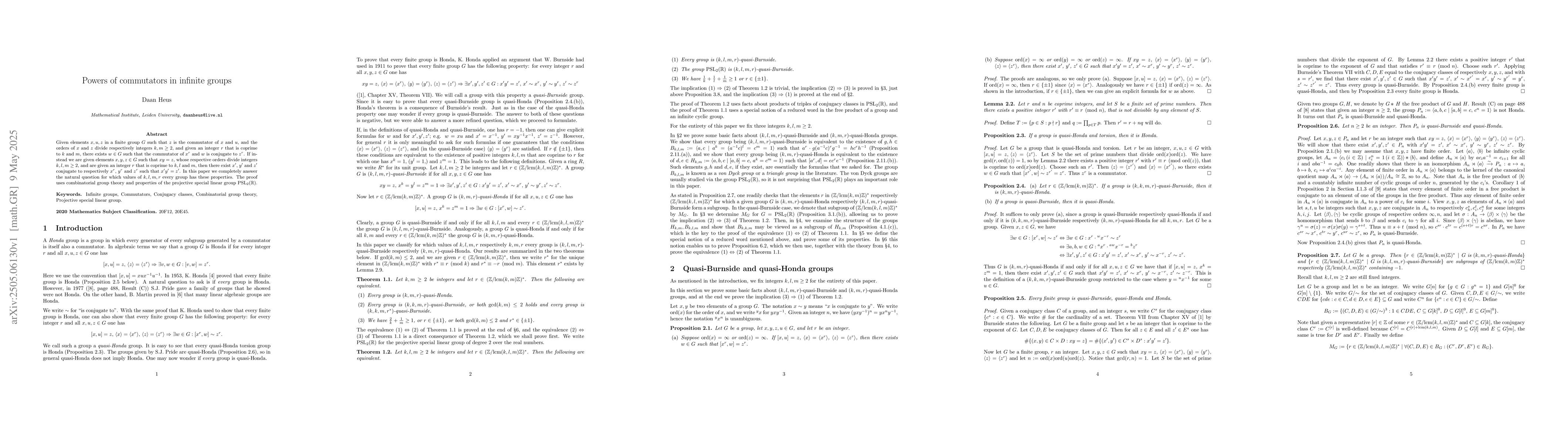 Given elements $x,u,z$ in a finite group $G$ such that $z$ is the commutator of $x$ and $u$, and the orders of $x$ and $z$ divide respectively integers $k,m \geq 2$, and given an integer $r$ that is coprime to $k$ and $m$, there exists $w \in G$ such that the commutator of $x^r$ and $w$ is conjugate to $z^r$. If instead we are given elements $x,y,z \in G$ such that $xy = z$, whose respective orders divide integers $k,l,m \geq 2$, and are given an integer $r$ that is coprime to $k,l$ and $m$, then there exist $x'$, $y'$ and $z'$ conjugate to respectively $x^r$, $y^r$ and $z^r$ such that $x'y' = z'$. In this paper we completely answer the natural question for which values of $k,l,m,r$ every group has these properties. The proof uses combinatorial group theory and properties of the projective special linear group $\mathrm{PSL}_2(\mathbb{R})$.