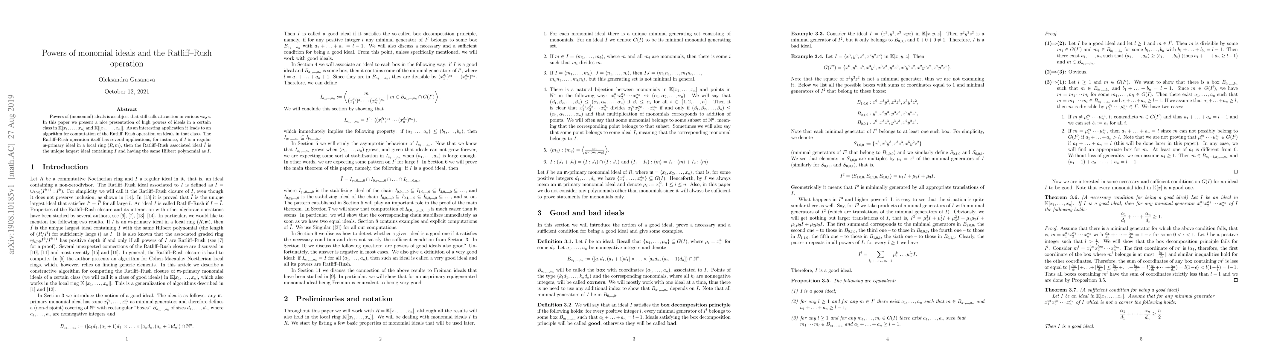 This paper presents a method to analyze high powers of monomial ideals in polynomial and power series rings, leading to an algorithm for computing the Ratliff-Rush operation on such ideals, which is significant in local ring theory for identifying the largest ideal containing a given regular ideal with the same Hilbert polynomial.