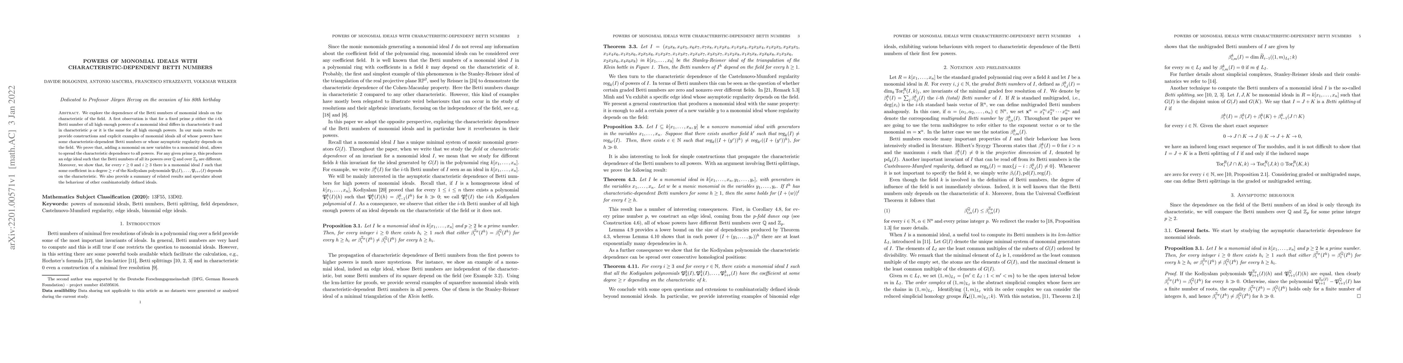 This paper investigates how Betti numbers of monomial ideals vary based on the field's characteristic, demonstrating that either they are characteristic-independent for sufficiently high powers or they differ significantly between characteristic $0$ and prime $p$. The authors construct examples of monomial ideals where Betti numbers change with the field's characteristic and prove that introducing new monomials can spread this characteristic dependence to all powers.