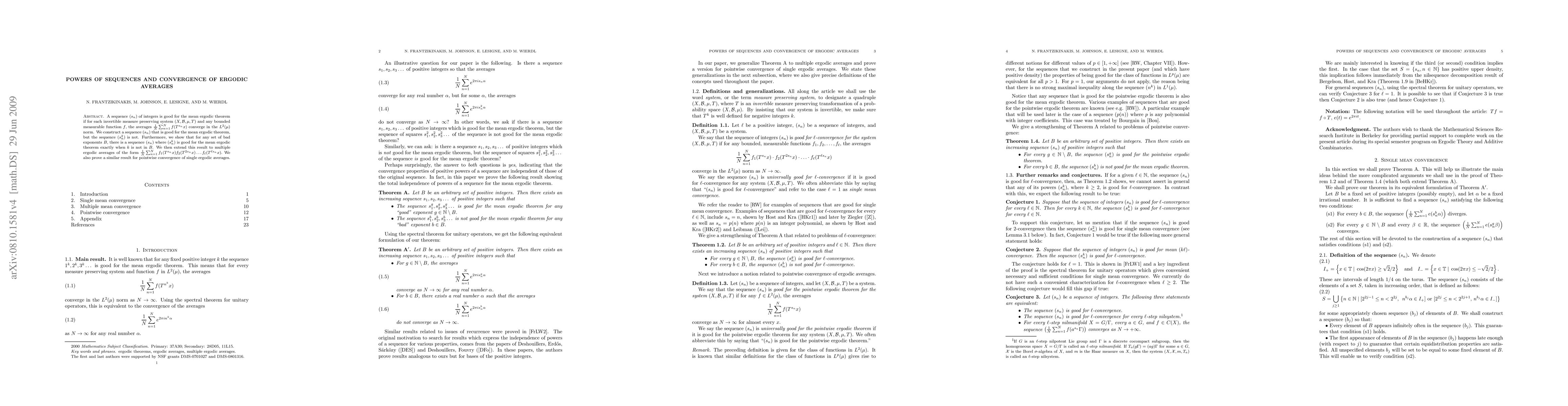 This paper constructs a sequence $(s_n)$ that satisfies the mean ergodic theorem but not for its squares, demonstrating nuanced behavior in ergodic averages. It further generalizes this result, showing that for any set of bad exponents $B$, there exists a sequence where $(s_n^k)$ conforms to the mean ergodic theorem if and only if $k$ is not in $B$, extending the findings to multiple ergodic averages and pointwise convergence.