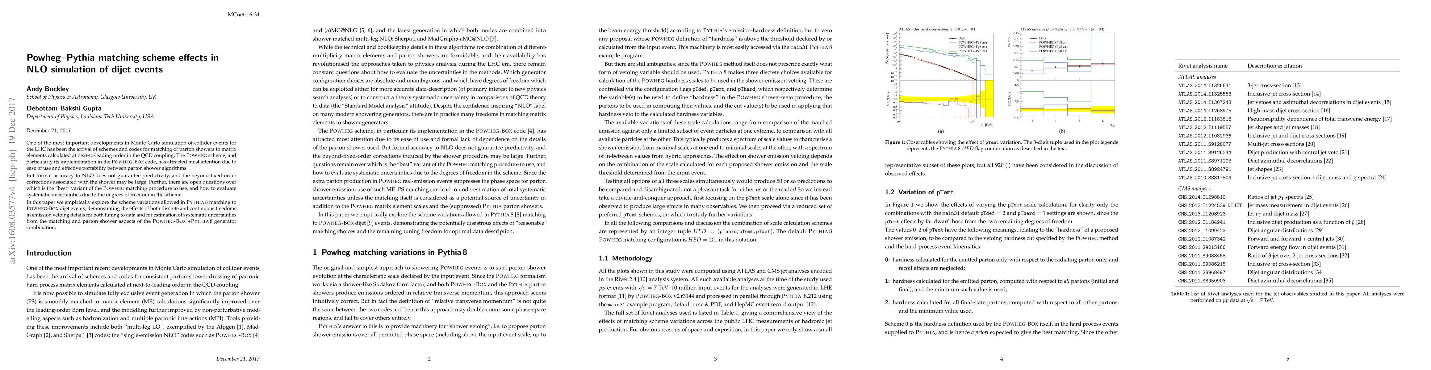 This paper explores variations in the POWHEG-Pythia matching scheme for NLO simulations of dijet events, assessing the impact of different emission vetoing details on both data tuning and systematic uncertainty estimation. It highlights the complexities and open questions regarding the best scheme variant and the associated uncertainties.