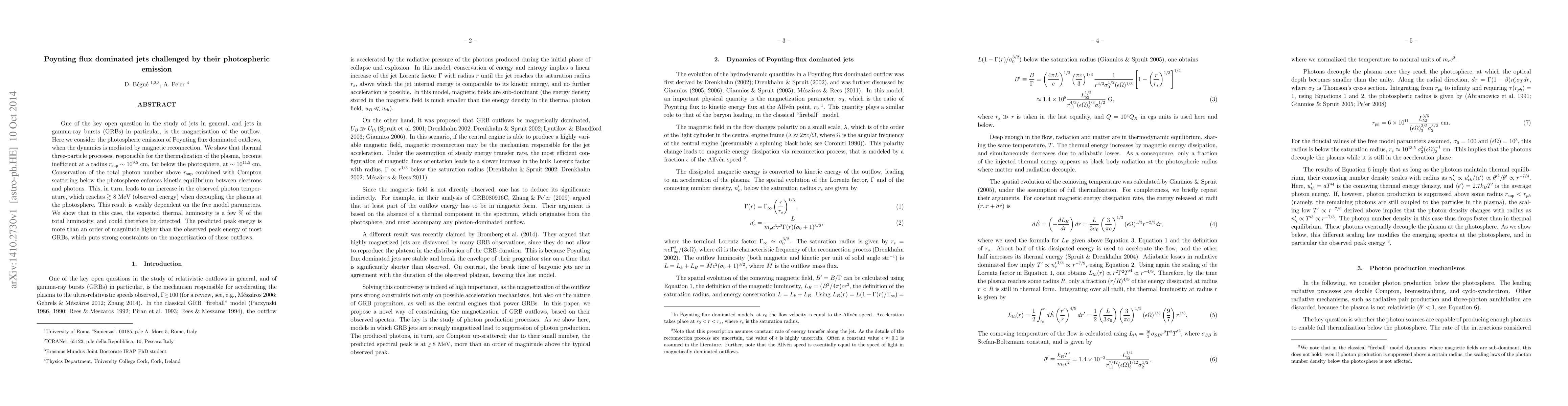 One of the key open question in the study of jets in general, and jets in gamma-ray bursts (GRBs) in particular, is the magnetization of the outflow. Here we consider the photospheric emission of Poynting flux dominated outflows, when the dynamics is mediated by magnetic reconnection. We show that thermal three-particle processes, responsible for the thermalization of the plasma, become inefficient at a radius $r_{\rm sup} \sim 10^{9.5}$~cm, far below the photosphere, at $\sim 10^{11.5}$~cm. Conservation of the total photon number above $r_{\rm sup}$ combined with Compton scattering below the photosphere enforces kinetic equilibrium between electrons and photons. This, in turn, leads to an increase in the observed photon temperature, which reaches $\gtrsim 8$~MeV (observed energy) when decoupling the plasma at the photosphere. This result is weakly dependent on the free model parameters. We show that in this case, the expected thermal luminosity is a few \% of the total luminosity, and could therefore be detected. The predicted peak energy is more than an order of magnitude higher than the observed peak energy of most GRBs, which puts strong constraints on the magnetization of these outflows.