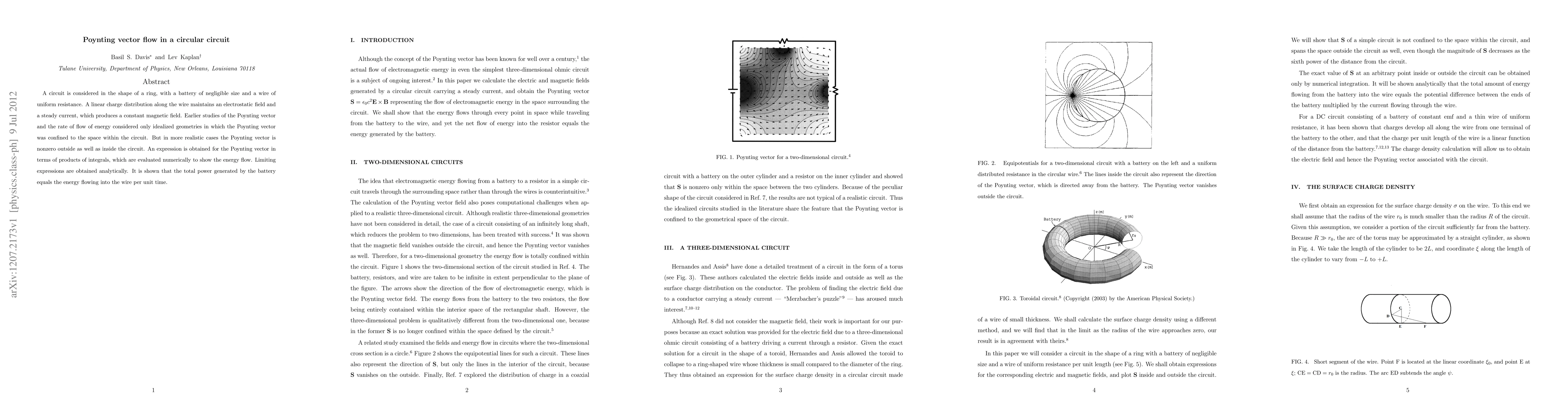 This study calculates the Poynting vector flow in a circular circuit with a battery and wire, finding that total power generated equals energy flowing into the wire per unit time.