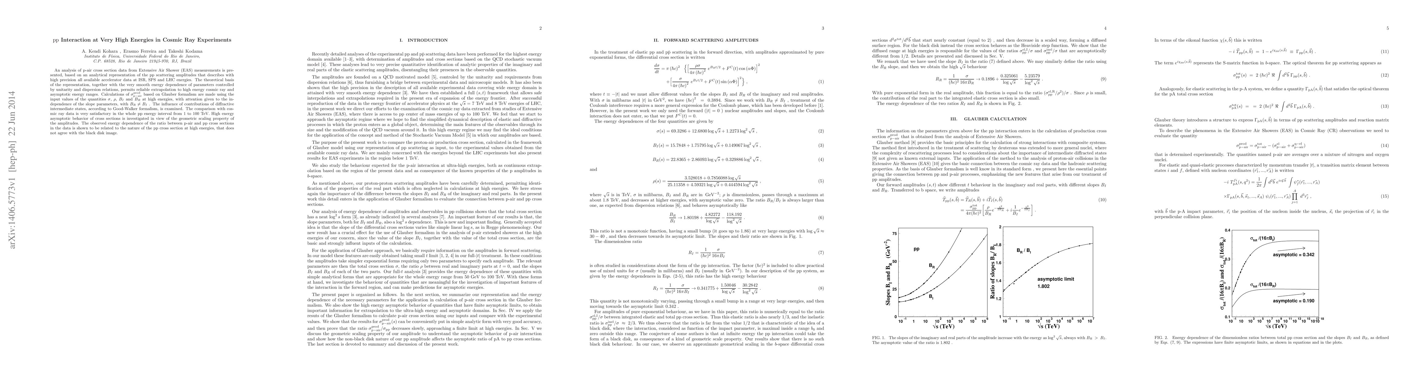 An analysis of p-air cross section data from Extensive Air Shower (EAS) measurements is presented, based on an analytical representation of the pp scattering amplitudes that describes with high precision all available accelerator data at ISR, SPS and LHC energies. The theoretical basis of the representation, together with the very smooth energy dependence of parameters controlled by unitarity and dispersion relations, permits reliable extrapolation to high energy cosmic ray and asymptotic energy ranges. Calculations of the p-air production cross section based on Glauber formalism are made using the input values of the pp forward scattering parameters at high energies, with attention given to the independence of the real and imaginary slope parameters. The influence of contributions of diffractive intermediate states, according to Good-Walker formalism, is examined. The comparison with cosmic ray data is very satisfactory in the whole pp energy interval from 1 to 100 TeV. High energy asymptotic behavior of p-air cross sections is investigated in view of the geometric scaling property of the pp amplitudes. The observed energy dependence of the ratio between p-air and pp cross sections in the data is shown to be related to the nature of the pp cross section at high energies, that does not agree with the black disk image.