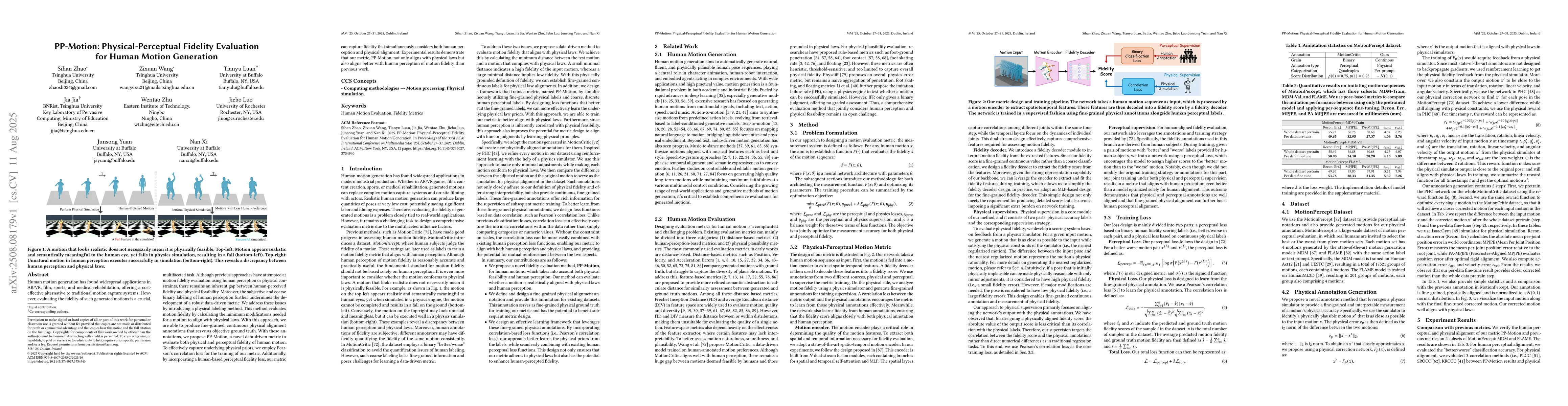 The research introduces PP-Motion, a data-driven metric for evaluating human motion fidelity by combining physical and perceptual fidelity. It uses a dual-stream design with a motion encoder extracting spatiotemporal features and a fidelity decoder producing a fine-grained, continuous fidelity score. The model is trained using supervision from both physical annotations and human perceptual labels.